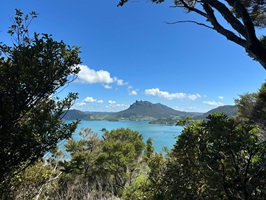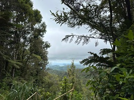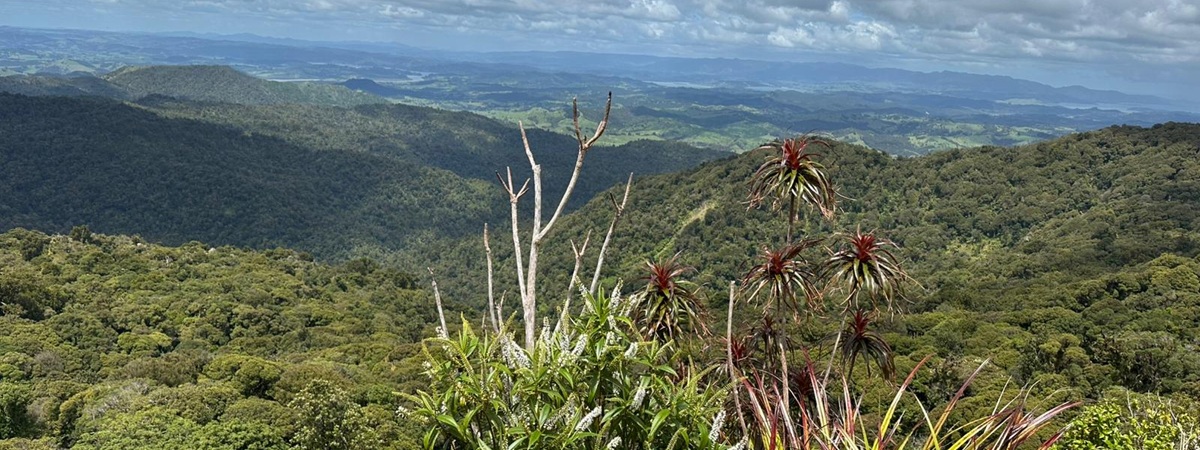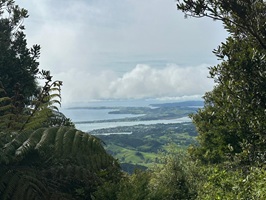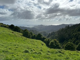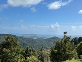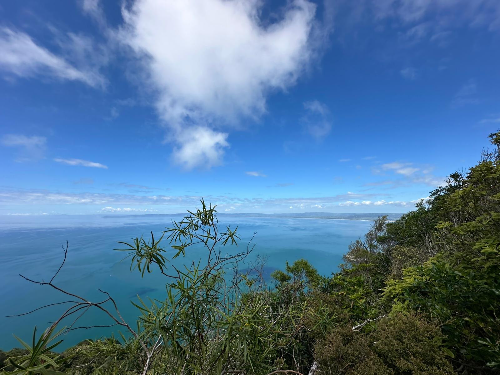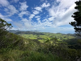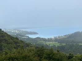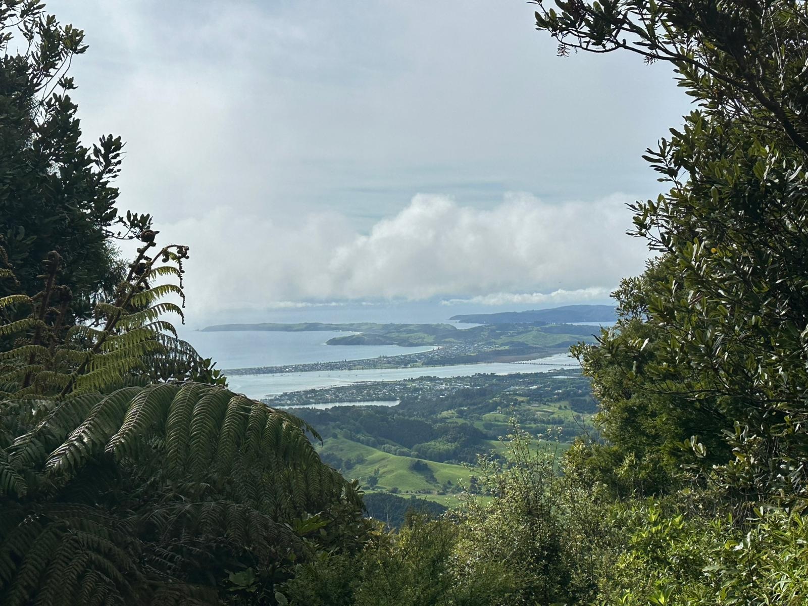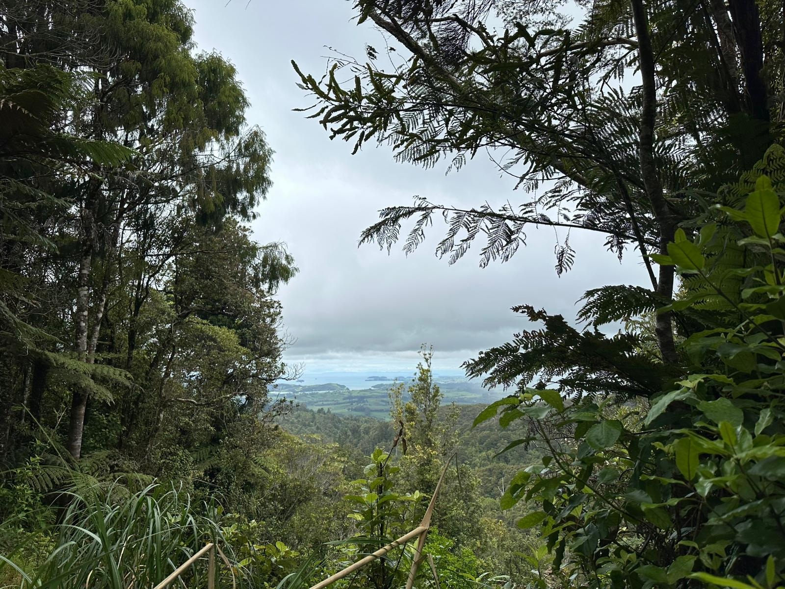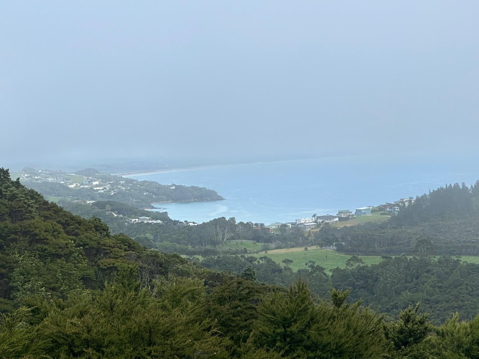 Um 7:30 Uhr ging es nahe des Pakiri Beach los. Wir hatten etwa zehn Stunden veranschlagt und die haben wir auch gebraucht. Allein für das erste Waldstück brauchten wir drei Stunden, es war ein ständiges Rauf und Runter. Wir machten eine kurze Pause an einem Hubschrauberlandeplatz und hatten sogar ein paar flüchtige Ausblicke auf die Küste. Die Wolken waren aber so schnell, dass man das Panorama wirklich nur kurz genießen konnte.