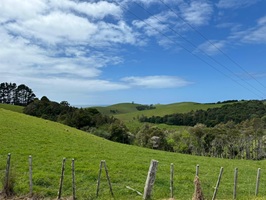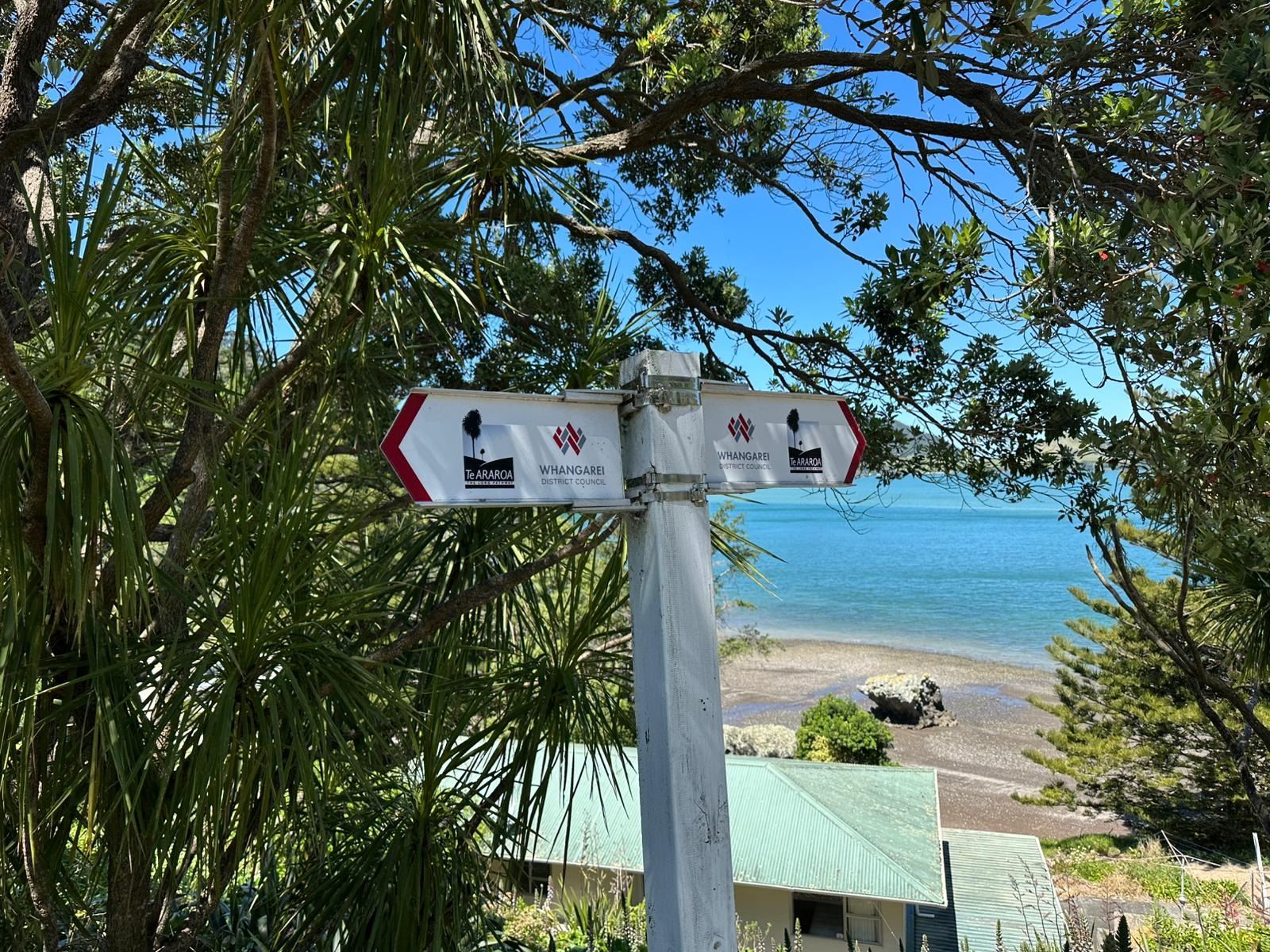 Danach ging es weiter Richtung Waipu. Obwohl der Weg (wieder einmal) an der Straße entlangführte, war es angenehm zu laufen. Zum Glück gab es neben der Straße einen mit Schotter und Splitt angelegten Rad- und Fußgängerweg. Das machte das Wandern nicht nur angenehmer, sondern auch sicherer.