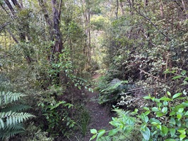Vom Schotter bog ich schließlich auf einen schattigen Waldweg ab, ein willkommener Schutz vor der direkt über mir stehenden Sonne. Der Weg schlängelte sich schön durch die Bäume, wurde schmaler und es gab ständig knackige Anstiege. Bei jedem dachte ich, jetzt kommt das Waorahi Camp, aber es hat sich dann doch noch hingezogen! Die letzten 3 km waren nochmal richtig anstrengend.