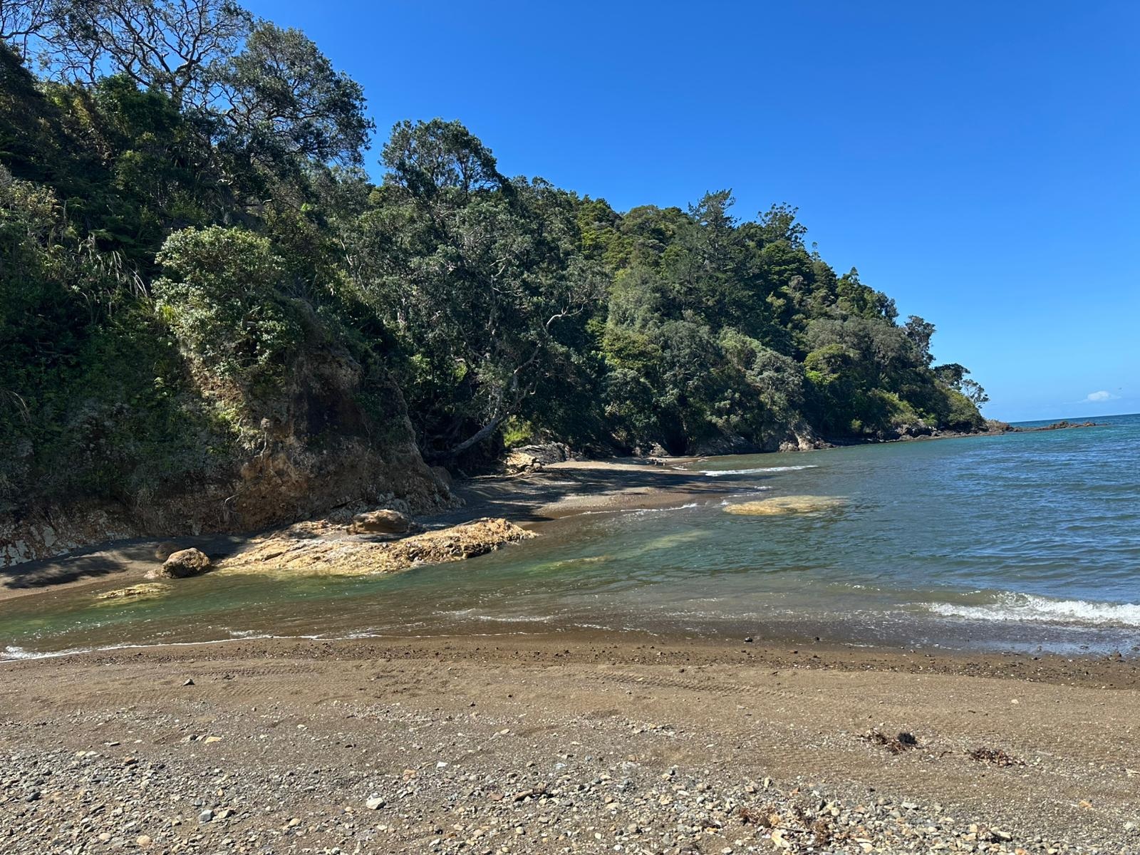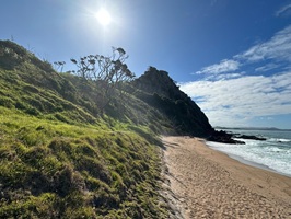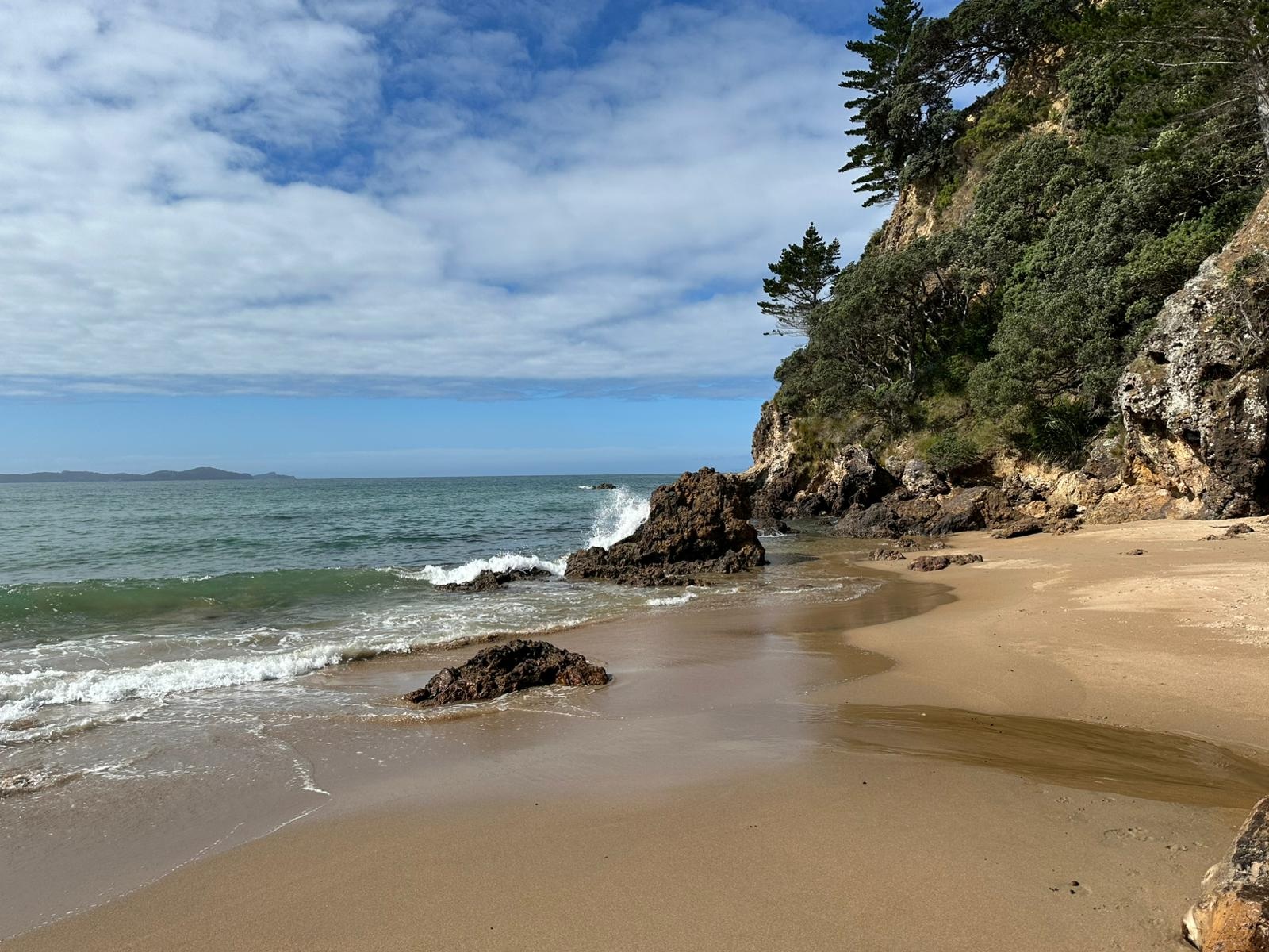 Zunächst führte mich der Weg über den Strand der Bream Bay. Er zieht sich gefühlt endlos lang und war dabei fast menschenleer. Ich kann mir gut vorstellen, dass das in der Hochsaison ganz anders aussieht.