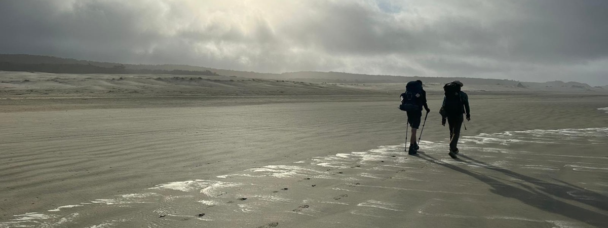 Der Morgen begann nass, denn die Nacht hatte uns ordentlich Regen beschert und auch am frühen Vormittag tröpfelte es noch. Am liebsten wäre ich schon vor Sonnenaufgang losgezogen, doch ich wusste, dass das Wasser in den Flüssen und am Strand wegen der Flut noch zu hoch sein würde. Trotzdem konnte ich es kaum erwarten, den Rucksack zu schultern. Genug vom feuchten Zelt und den schmutzigen Klamotten – ich war bereit für den Aufbruch, auch wenn es bedeutete, eine Weile am Strand warten zu müssen, bis die Ebbe kam.