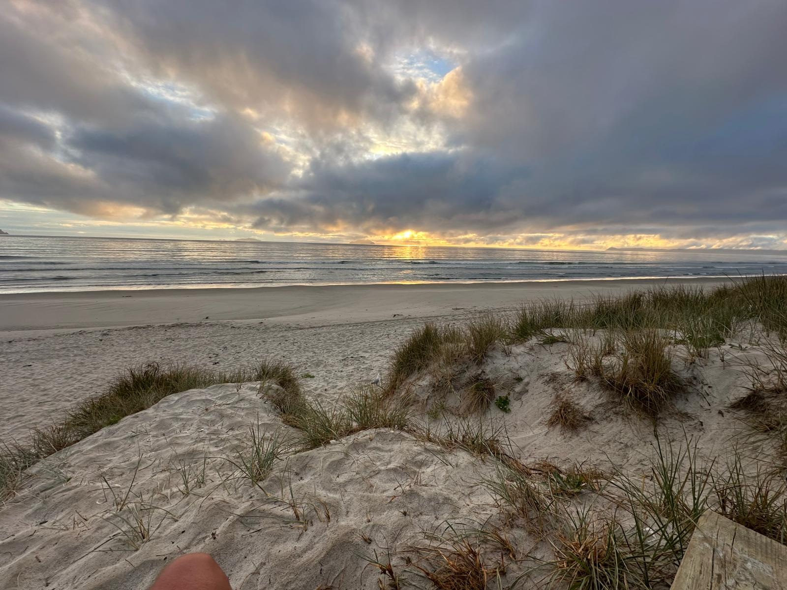 Die Müdigkeit sitzt mir nach der heutigen Wanderung in den Knochen, aber das laute Rauschen des Pazifiks, das nun direkt hinter den Dünen des Uretiti Camps zu hören ist, ist die perfekte Geräuschkulisse für diesen Rückblick. Was für ein Tag der Kontraste, zwischen steilen Anstiegen und endlosen Stränden, zwischen brennendem Asphalt und überwältigender Freundlichkeit.