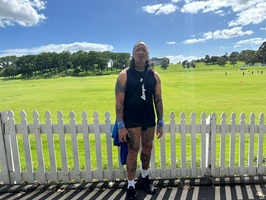 Als ich die Rasenfläche verließ, traf ich Albert, einen Maori. Ich war mir erst nicht sicher, ob ich ihn wegen eines Fotos fragen sollte, aber es gibt ja immer nur Ja oder Nein. Ich habe ein Bild von ihm bekommen! Wir haben uns sehr nett unterhalten und uns zum Abschied sogar gedrückt.