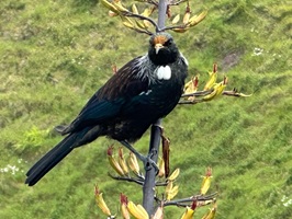 Heute Morgen bin ich ganz gemütlich gestartet. Es gab einige Hiker, die heute passen wollten, aber mir hat der Weg aus der Stadt hinaus sofort gefallen. Schon im ersten Park habe ich eine Weile verbracht und ein paar Tūī‘s beim Spielen zugesehen – so wunderschöne Vögel!