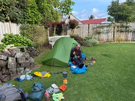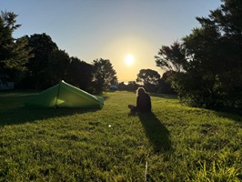 Sie haben mir angeboten, mit meinem Schlafsack drinnen zu schlafen, aber ich ziehe es vor, draußen zu bleiben. Ich liebe mein Zelt und bin froh, jetzt den Regen prasseln zu hören.