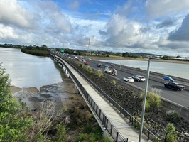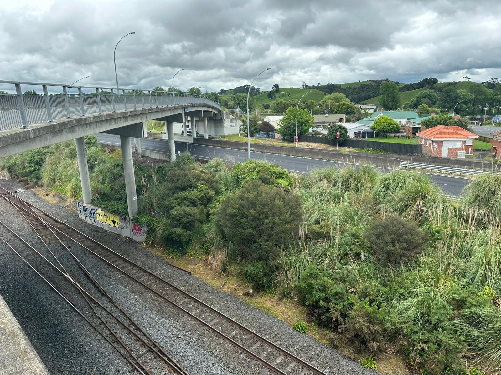 Anschließend hatte ich genug Unterhaltung mit David, dem Australier, mit dem ich ein Stück lief. Nach einer kleinen Pause erreichte ich das Puhinui Reserve, in dem ich aber schnell wieder draußen war. Ein Teich mit Palmen und Enten war vielversprechend, doch schon führte mein Weg über eine Weide und dann tauchte erneut Industrie auf. Schließlich landete ich mitten im Industriegebiet mit sechs Fahrstreifen und unruhigem Verkehr. Der lange Arm der Großstadt Auckland reicht bis zur Vorortstadt Manukau. Erst danach wir der Te Araroa wieder das, was er sein soll: ein Wildnis- und Naturwanderweg.