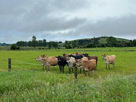 Ein amüsantes Highlight war eine Gruppe von bestimmt 50 Kälbern, die vom anderen Ende der Weide angelaufen kamen, als sie mich sahen. Sie folgten mir eine ganze Weile am Zaun entlang, bis es nicht mehr weiterging. „Ohne Rucksack haben die Kleinen natürlich keine Erlaubnis mitzuwandern“ – schade eigentlich!