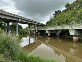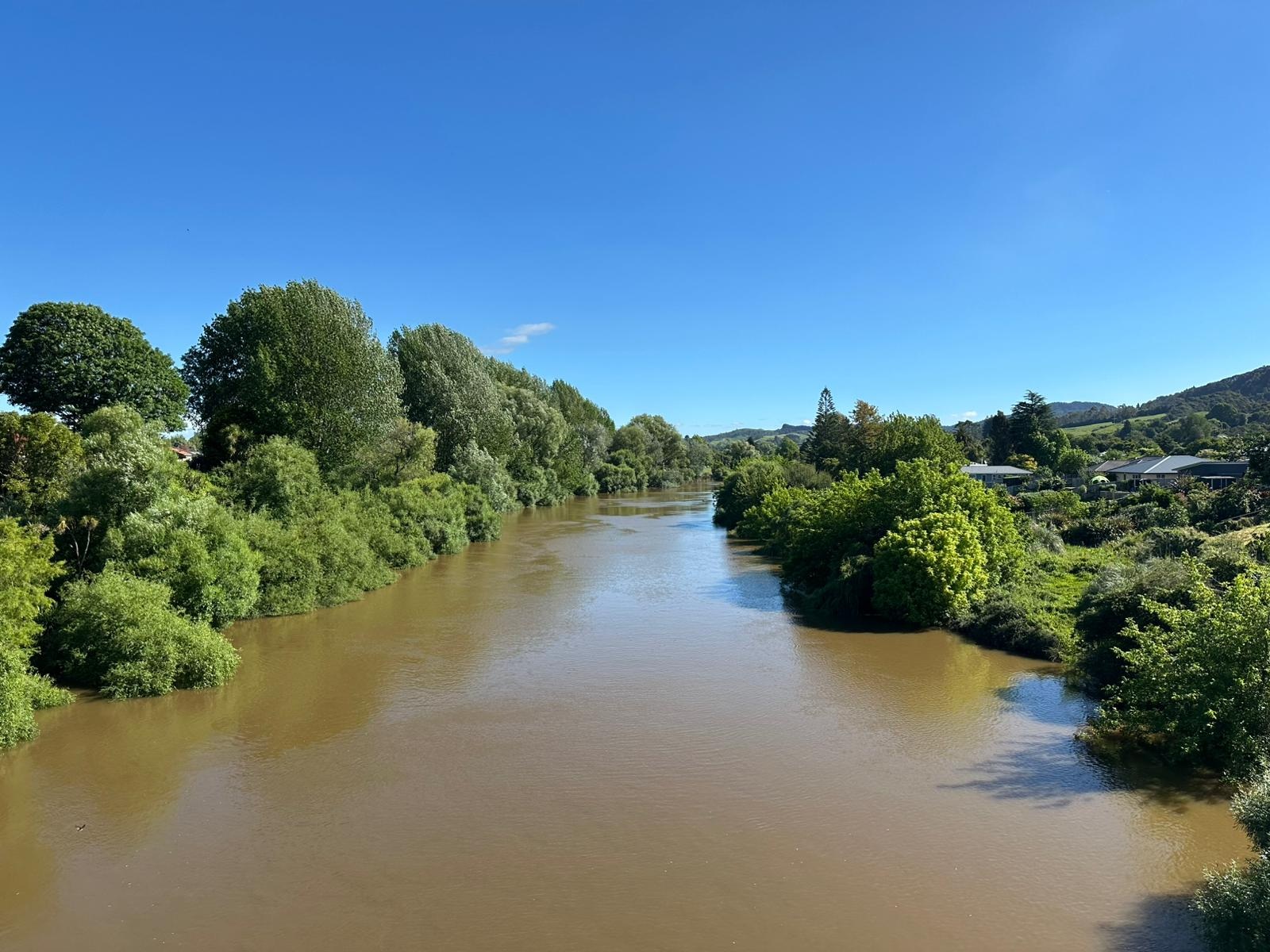 Das letzte Stück nach Huntly führte an der Straße entlang, aber der Fluss blieb in Sichtweite, denn die Brücke stand kurz bevor, die mich zum Camp auf die andere Seite bringen würde. Wegen des Quartetts war der eine Trail Host bereits ausgebucht und der andere hatte keine Zeit, also habe ich vorsorglich für morgen und übermorgen einige angeschrieben. Hamilton ist bestätigt, jetzt warte ich nur noch auf die Zusage für Ngaruawahia.