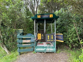 Ich befand mich auf dem Kauri Loop und sah viele kleine, aber schon sehr beeindruckende Kauri-Bäume. Die Wichtigkeit des Kampfes gegen das Kauri-Sterben war auf dem Trail präsent. Zu Beginn des Weges waren die Schuhreinigungsstationen noch gut bestückt mit Bürsten, Wasser und Desinfektionsmittel. Weiter hinten fehlten die Utensilien jedoch oft. Ich fragte mich, warum die Bekämpfung der Krankheit in manchen Bereichen wohl wichtiger genommen wurde als in anderen.