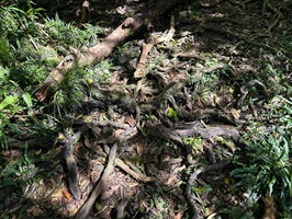 Der Aufstieg zum Hakarimata Walkway gestaltete sich extrem anstrengend. Er führte über zahlreiche – oder soll ich lieber sagen: zahllose - angelegte Treppenstufen, während der Abstieg später von einem Wurzelwerk erledigt wurde, dass keine weiteren Stufen nötig machte.
