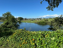 Ich war wieder einmal fasziniert von der Flora am Straßenrand. Auf einer Strecke von 100 Metern hatte sich Kapuzinerkresse ausgebreitet, die bis zum Flussufer wuchs – einfach wunderschön. Und ich fragte mich, wie der Fluss wohl bei normalem Wasserpegel aussieht, so viele Bäume, die jetzt im Wasser standen.