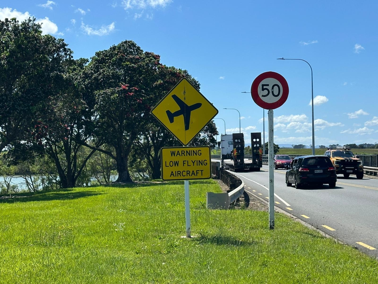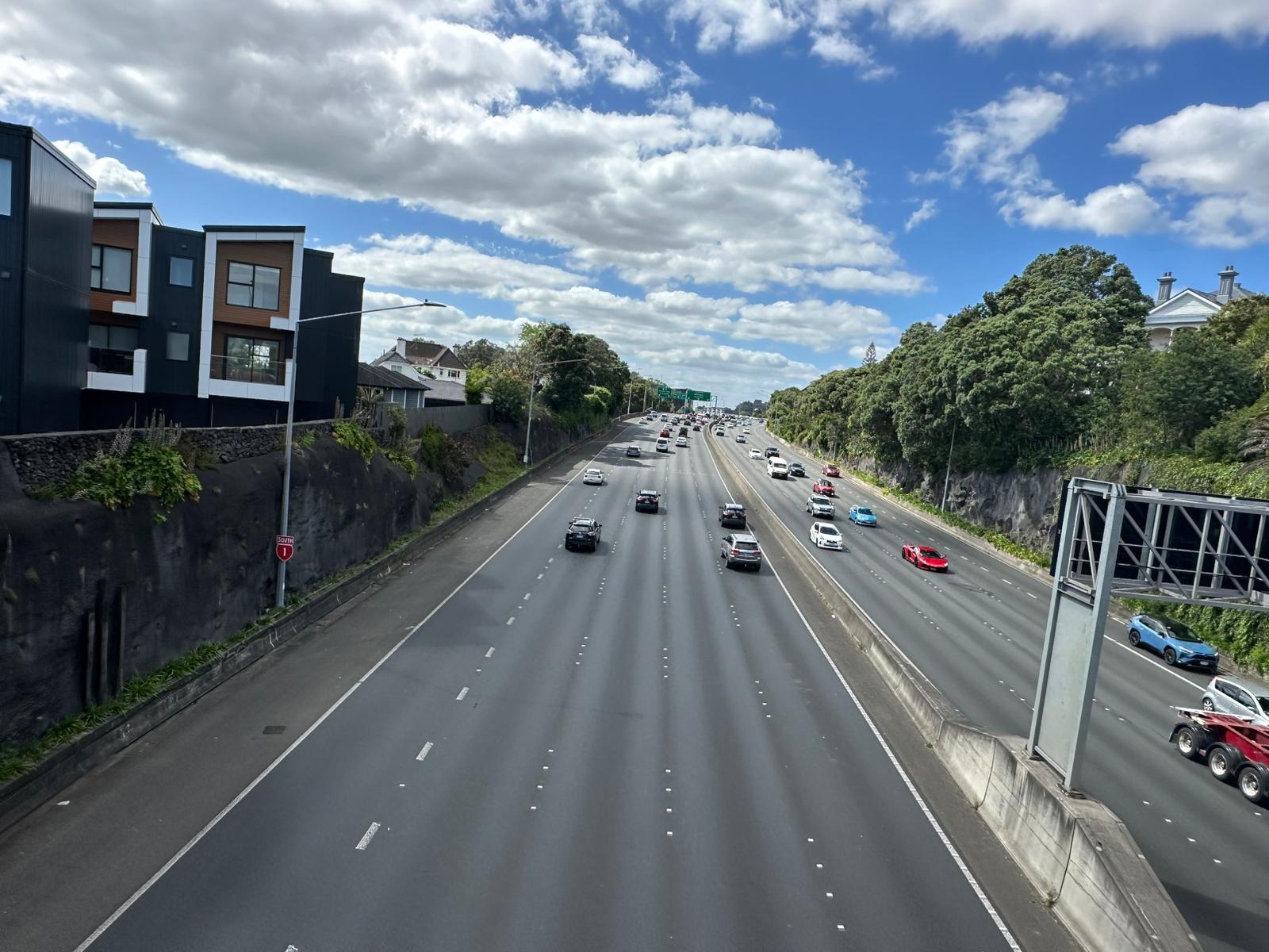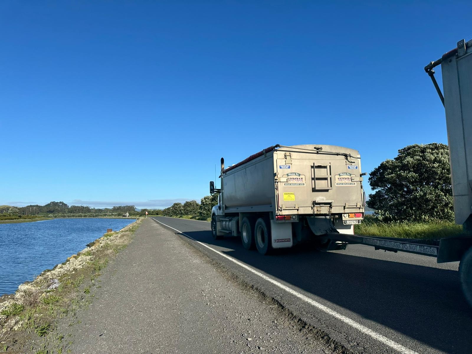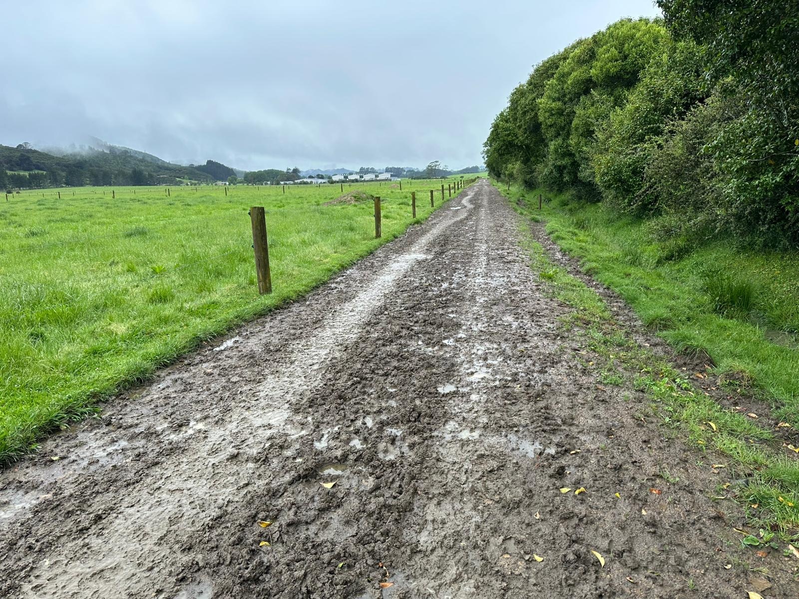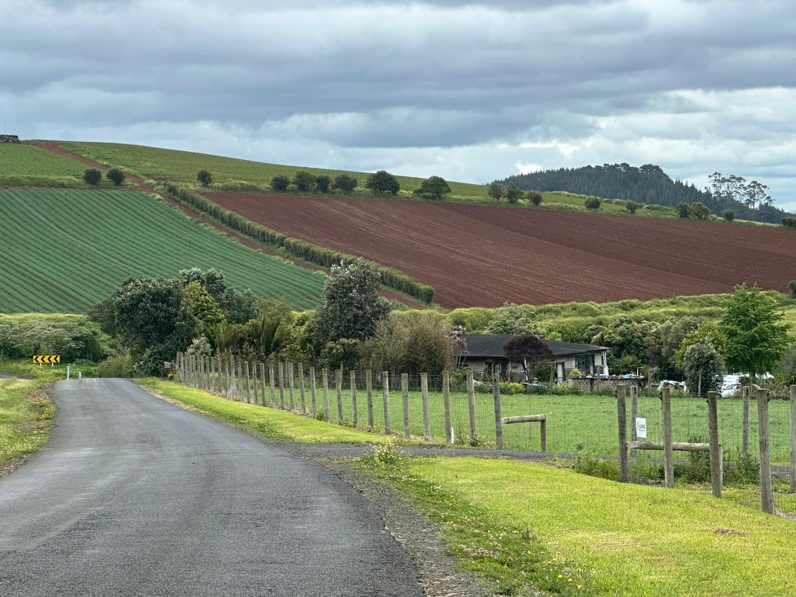 Weiter ging es auf der Straße Richtung Mercer, wo mich eine unerwartete Hürde erwartete: Straßenarbeiten. Auch als Fußgänger kam ich nicht durch und musste eine Umgehung laufen – nicht zu ändern. So schön die Landschaft in Neuseeland ist, auch hier gibt es Industrie. Ich lief an riesigen Hallen vorbei, die Stahllieferanten, Bohrer, Autoreifenfirmen und mehr beherbergten. Glücklicherweise war ich bald durch und es wurde wieder grüner, mit Häusern auf riesigen Grundstücken.