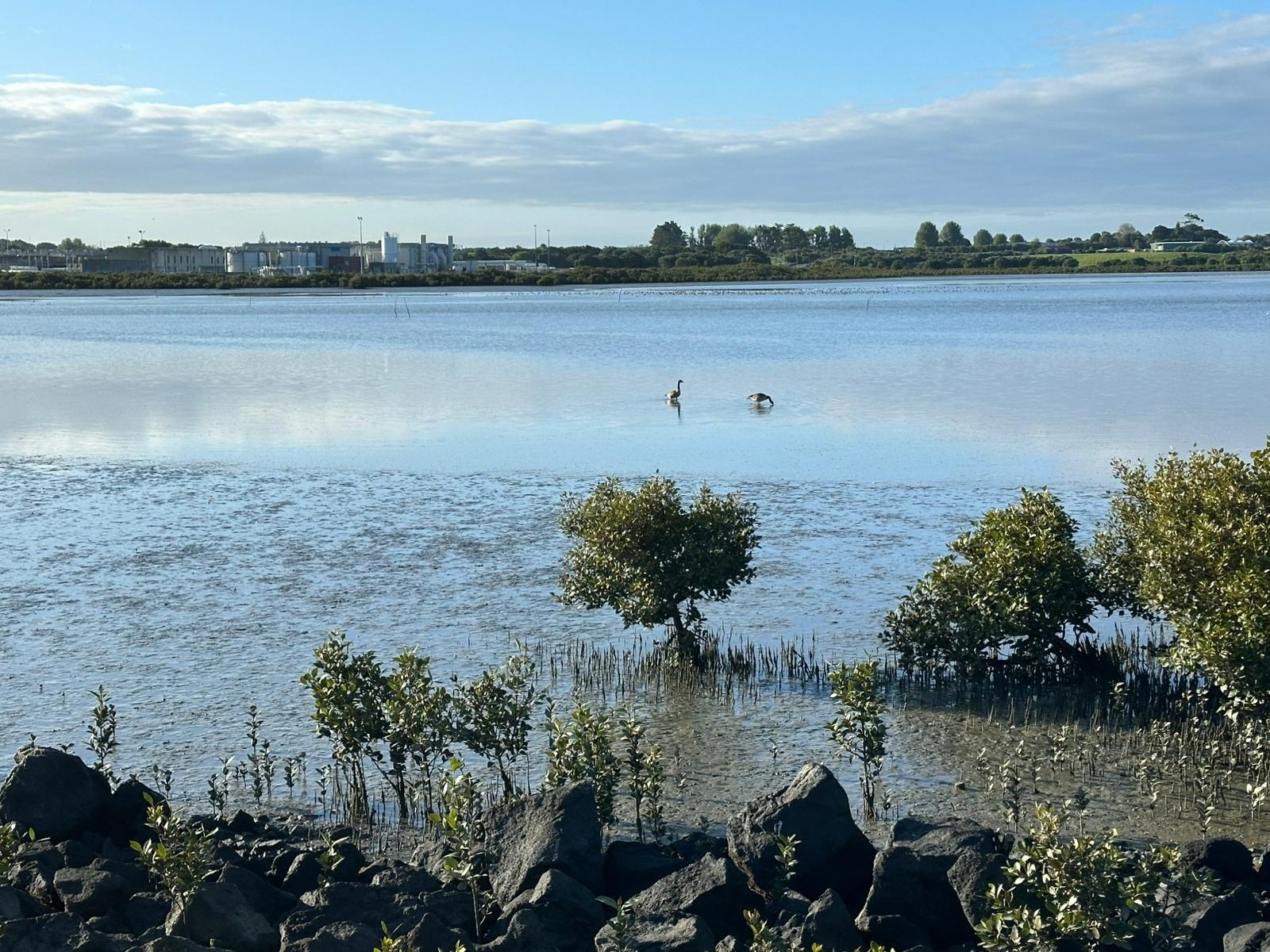 Leider roch es nicht besonders gut, da ein Lastwagen nach dem anderen zur Kläranlage fuhr. Trotz Kläranlage war der Watercare Coastal Walkway schön und voller Vögel.
