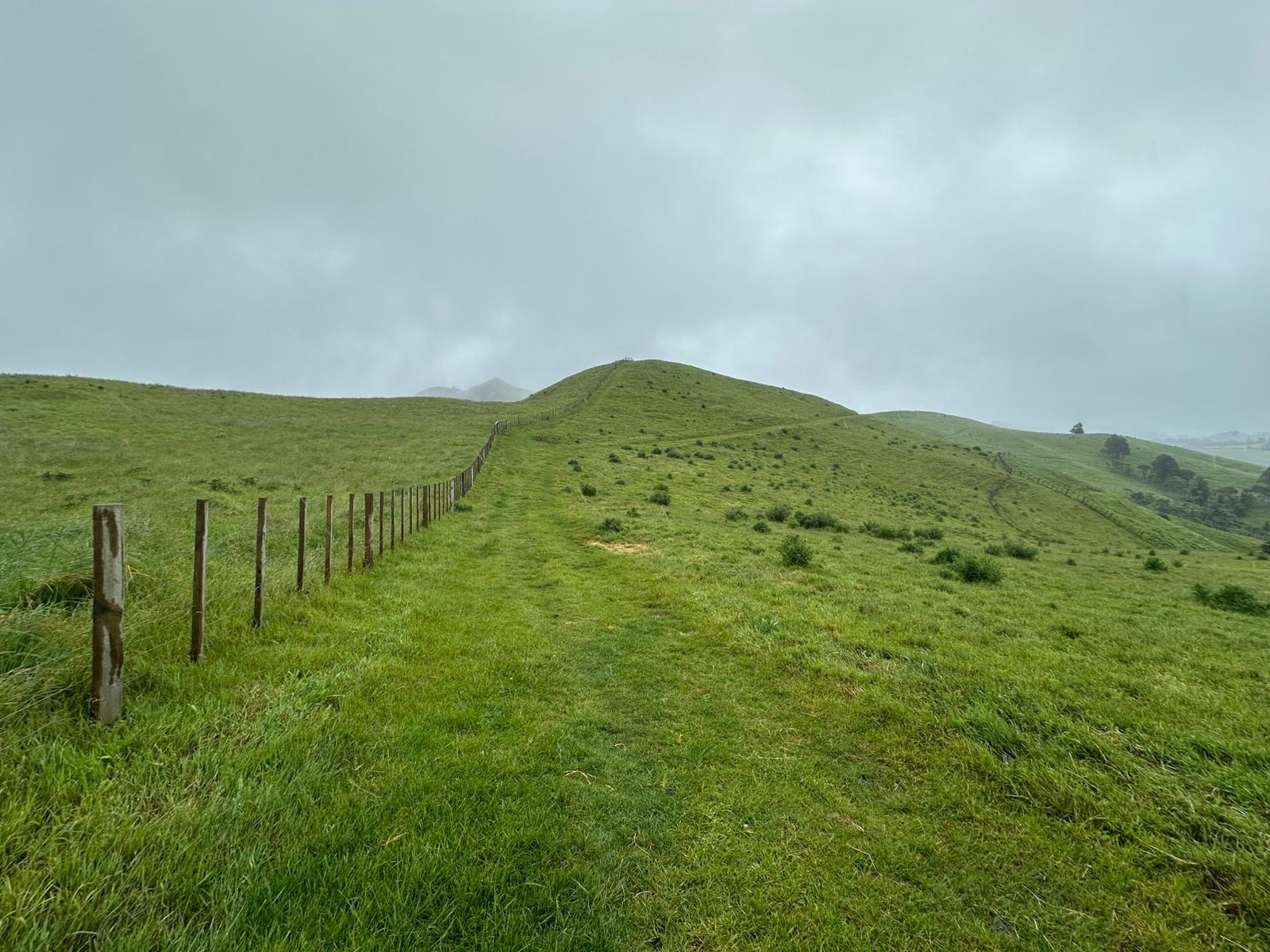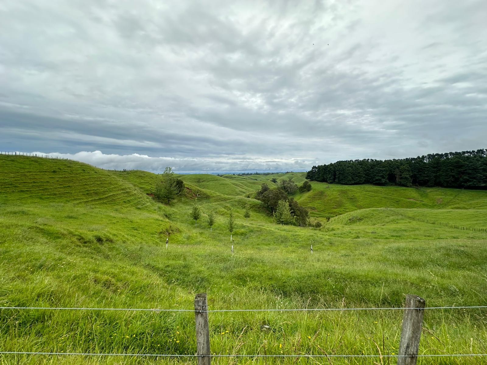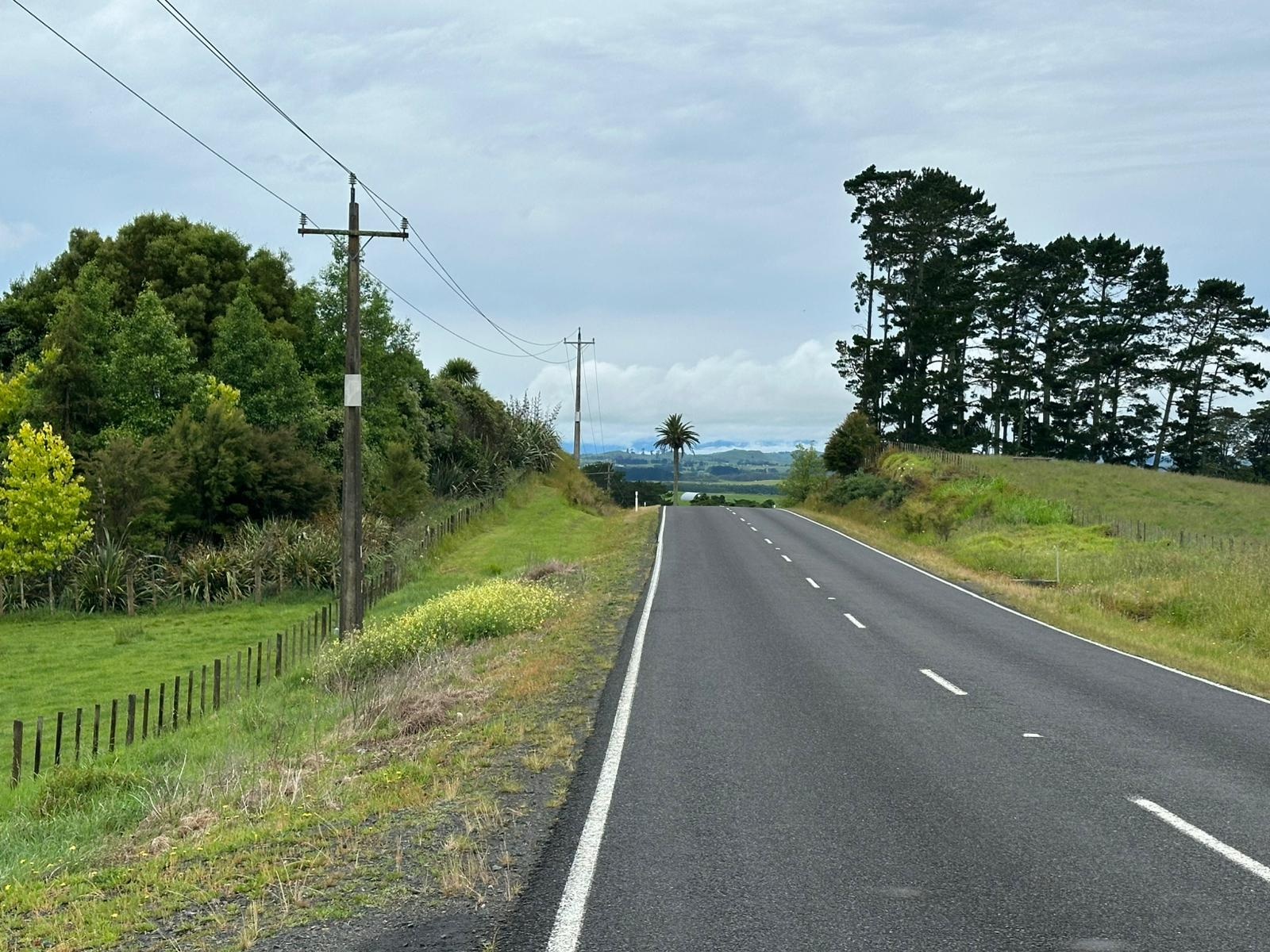 „Endlich“ kam noch mal ein Anstieg. Ich machte unten eine kurze Pause und ging die paar hundert Meter Höhenanstieg ganz langsam an. Es war noch früh und ich hoffte, der Regen würde ausbleiben. Während meiner Pause am Straßenrand hielt sogar ein Auto an, um zu fragen, ob ich Hilfe brauchte. Das ist hier in Neuseeland wirklich super, die meisten sind sehr freundlich und sehr, sehr hilfsbereit.