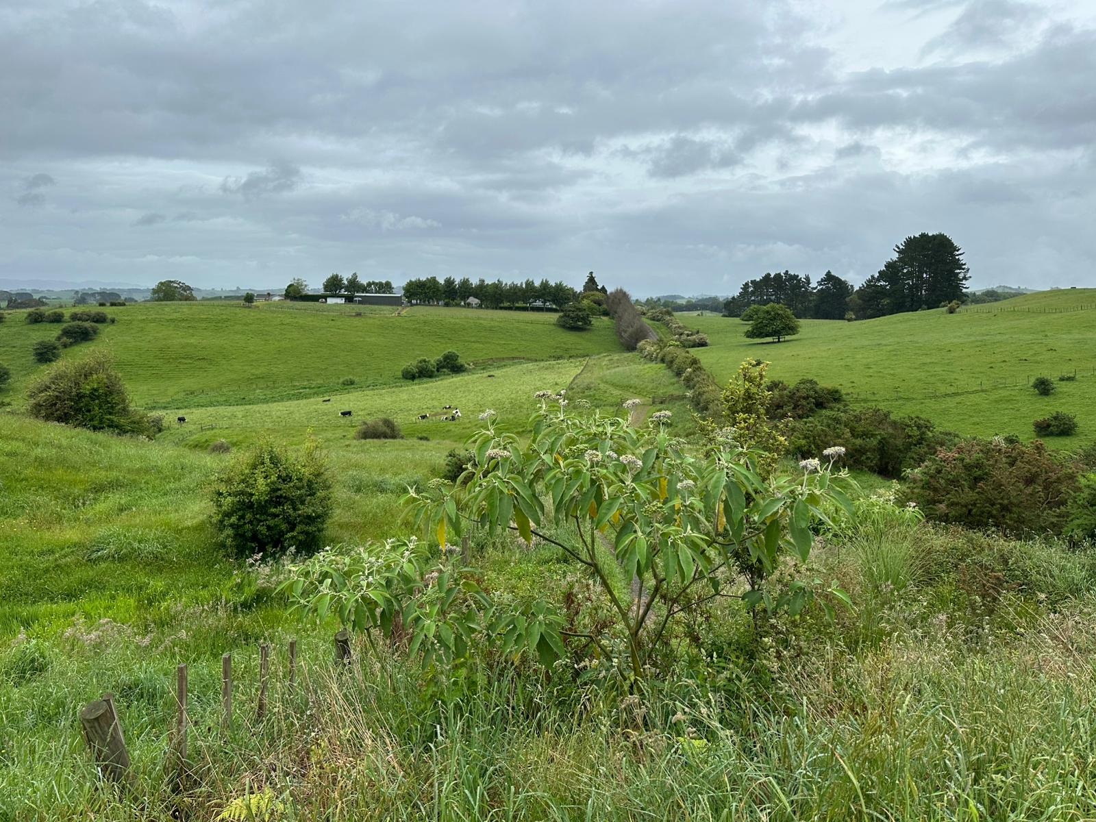 Von der Weide kam ich unvermittelt in den Busch – unglaublich, eben noch Weideflächen, jetzt Farne und Palmen! Der Abstieg dauerte länger als erwartet, danach noch ein Stück Straße, bis ich die Irish Road in Pokeno sah, wo Barbara und Jim, die Trail Angels, wohnten.