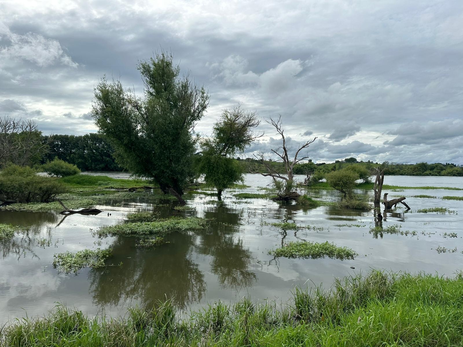 Von nun an ging es einfacher auf der Straße weiter, immer in Begleitung des Flusses, der mich die ganze Etappe über auf der rechten Seite begleiten sollte. Auch die umliegenden Wiesen standen teilweise unter Wasser, was auf die enormen Regenmengen der letzten Tage hindeutet.