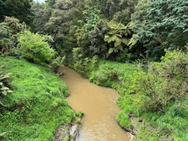 Was für ein toller Morgen das war! Wir hatten zu sechst im Aufenthaltsraum übernachtet, und der Sonnenaufgang war einer der schönsten, die ich bisher sah. Das Meer lag ganz ruhig da, kein Vergleich zur letzten, stürmischen Nacht. Gemütlich packte ich meine Sachen und machte mich auf den Weg. Ich überquerte die Orewa Brücke und lief am Fluss entlang. Weil Ebbe war, führte der Fluss wenig Wasser. Bald konnte ich von der Straße abbiegen und folgte einem Fahrrad- und Fußgängerweg. Es ist ein Genuss, wenn man weiß, dass man wenige Kilometer Vor sich hat und dadurch viel Zeit. Dann kann ich aufmerksamer auf alles sehen, was um mich herum passierte und es aufnehmen.