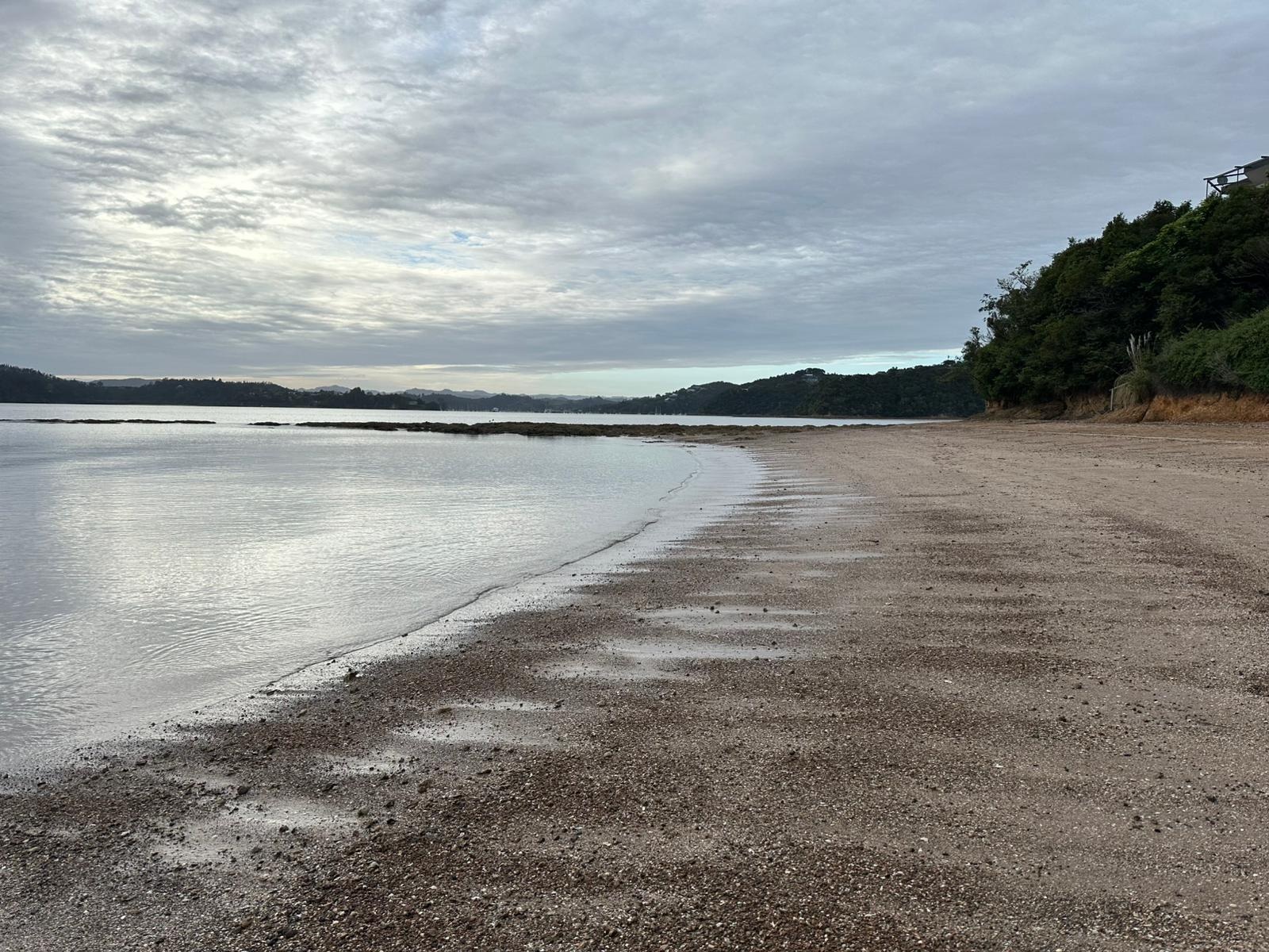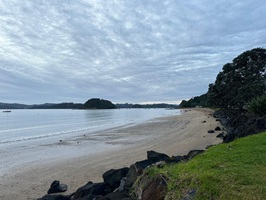 Leider war mit der Wildnis bald Schluss, und die Bebauung begann. Ich geriet mitten in eine Challenge für etwa hundert Schulkinder am Strand, eine Rallye, bei der ich unvermittelt zur Attraktion wurde. Danach ging es durch Wohngebiete. Klar, der Blick auf den Strand ist schöner, aber auch diese Abschnitte gehören dazu. Am Waiake Beach gab es das nächste süße Schulcamp mit Segelbooten. Das Wasser nach der nächsten Bucht war sehr unterschiedlich gefärbt, von ganz hell Türkis bis dunkel und auf der anderen Seite der Bucht leuchteten die Hügel grün.