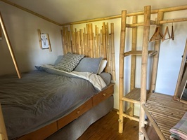 Ein herzerwärmendes Detail sind die beiden alten Kühe, die die Besitzerin geschenkt bekam und so vor dem Schlachter rettete. Ich überquerte den Bach, um auf ihre Wiese zu gelangen, und sie warteten schon sehnsüchtig auf Streicheleinheiten – ein schöner Moment. Der Hund, dessen Name mir leider entfallen ist, aber der übersetzt „der Blitz“ heißt, machte seinem Namen alle Ehre – es ist einfach eine tolle Atmosphäre hier.