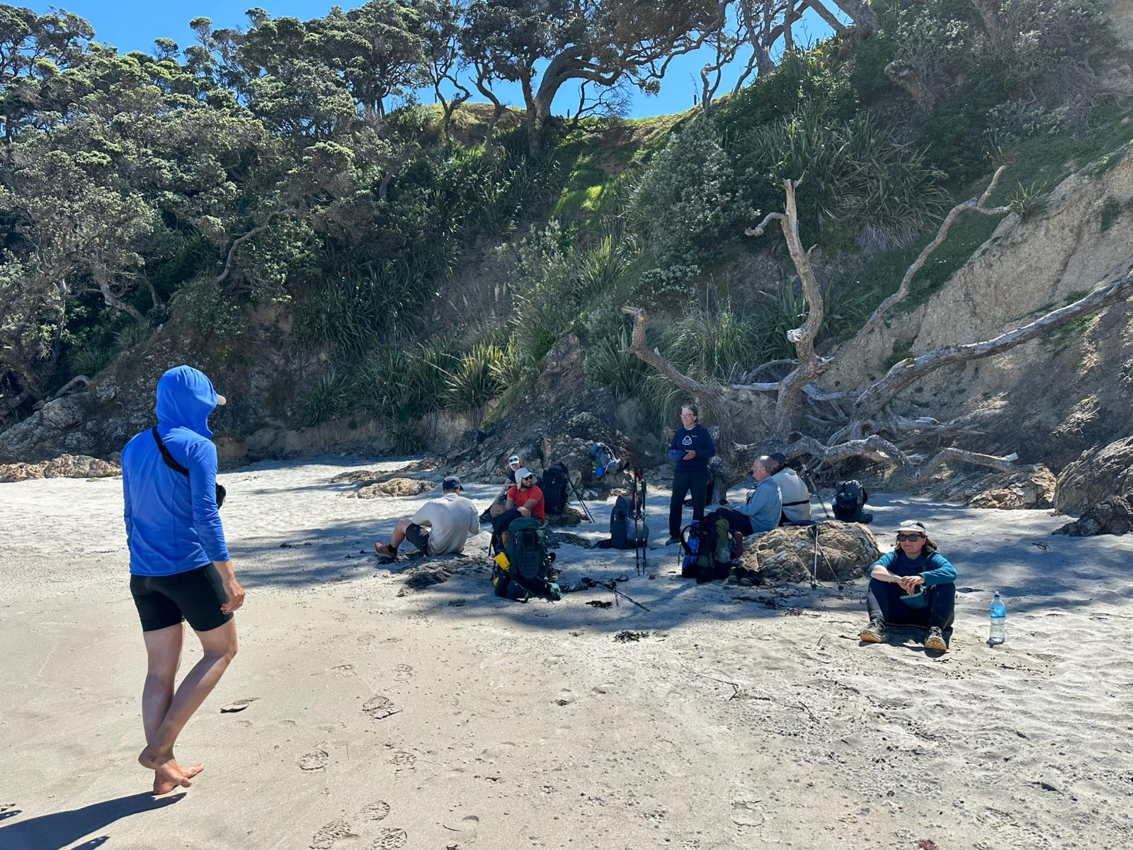 Zwischendurch schüttelte ich mir den Sand aus den Schuhen, ich hatte einiges „gesammelt“. Als ich weiterlief, bemerkte ich zuerst nicht, dass die Rufe, die ich hörte, mir galten. Es waren Kate und Julia – aus Neuseeland und Spanien. Mit ihnen und sechs anderen bin ich anfangs auf dem Ninety Mile Beach zusammen gelaufen. Es war eine gute Zeit, aber unsere Geschwindigkeiten sind unterschiedlich. Die beiden waren verletzt und machten gerade eine Pause; Nate wohnt hier in Mangawhei. Später stießen auch noch die anderen aus unserer ursprünglichen Truppe dazu. Ich hoffe wirklich, ich treffe die Gruppe bald wieder.