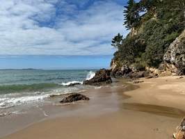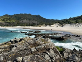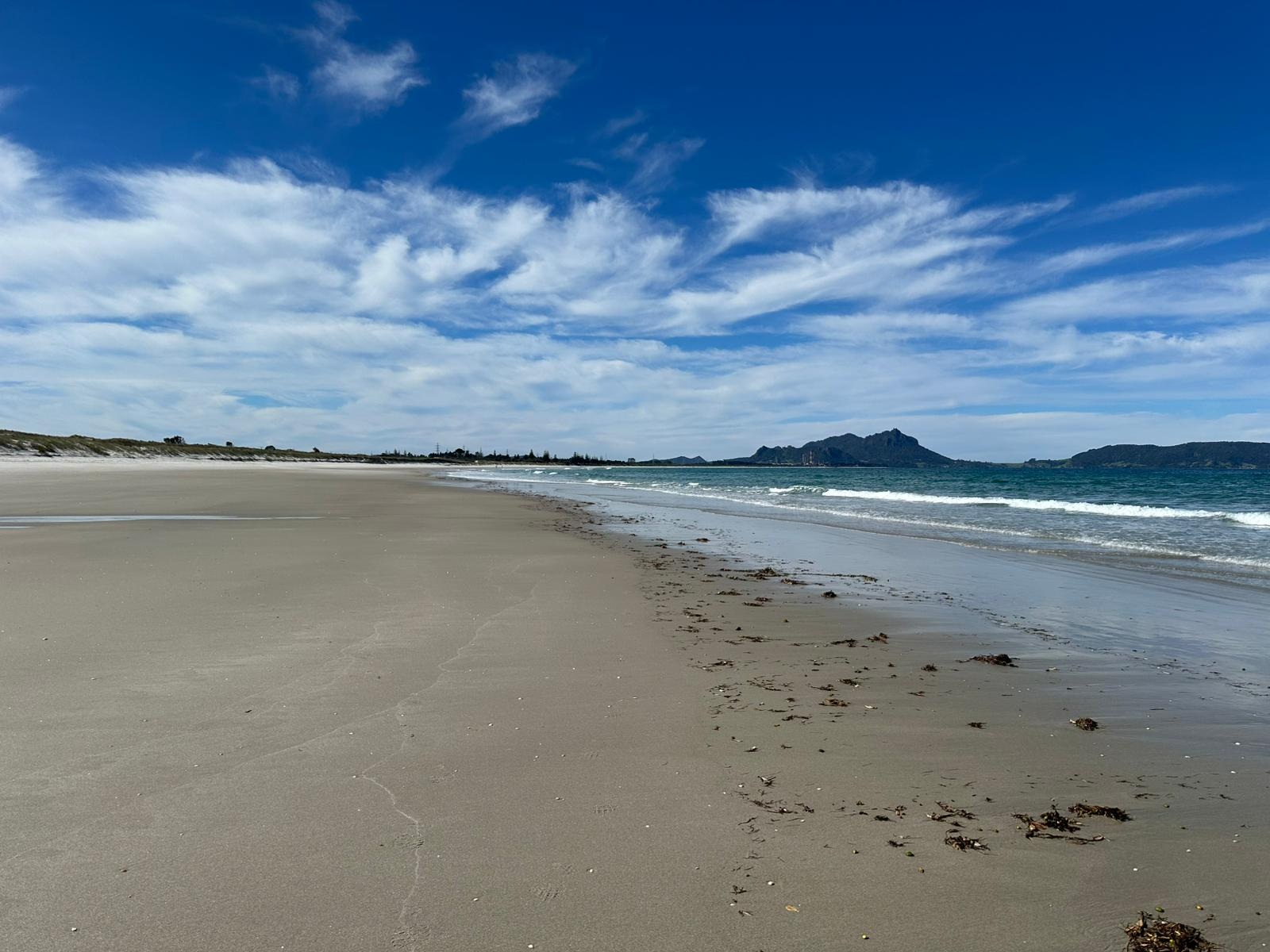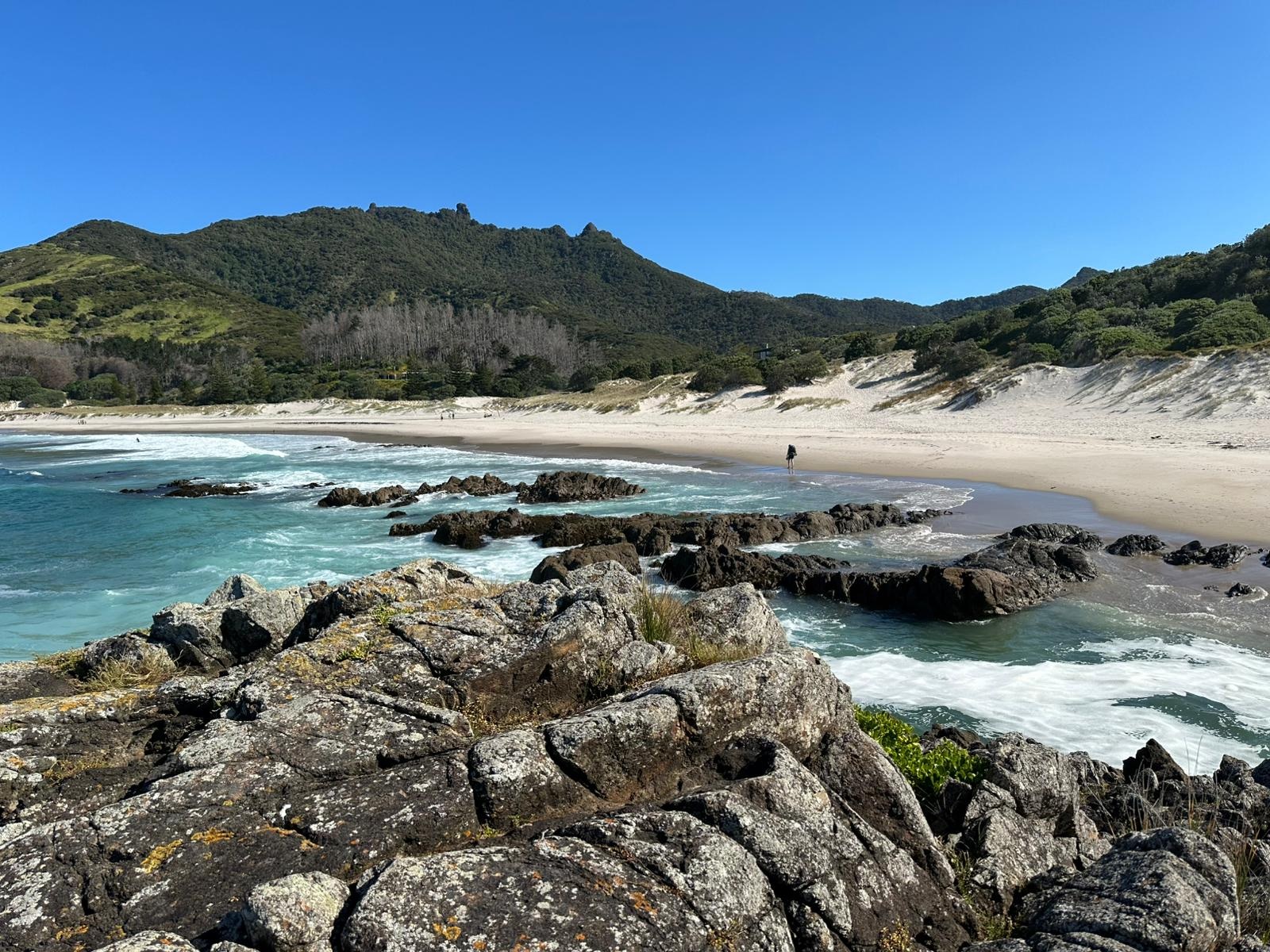 Zunächst führte mich der Weg über den Strand der Bream Bay. Er zieht sich gefühlt endlos lang und war dabei fast menschenleer. Ich kann mir gut vorstellen, dass das in der Hochsaison ganz anders aussieht.