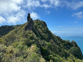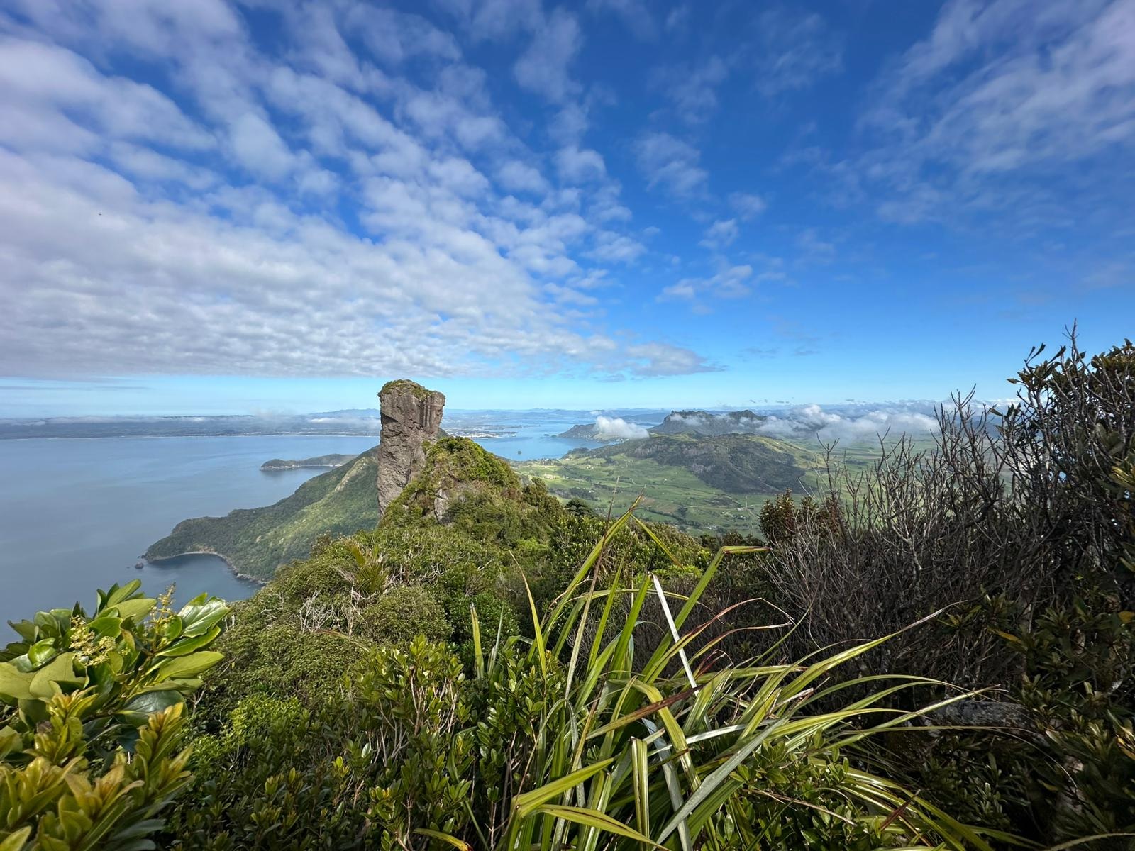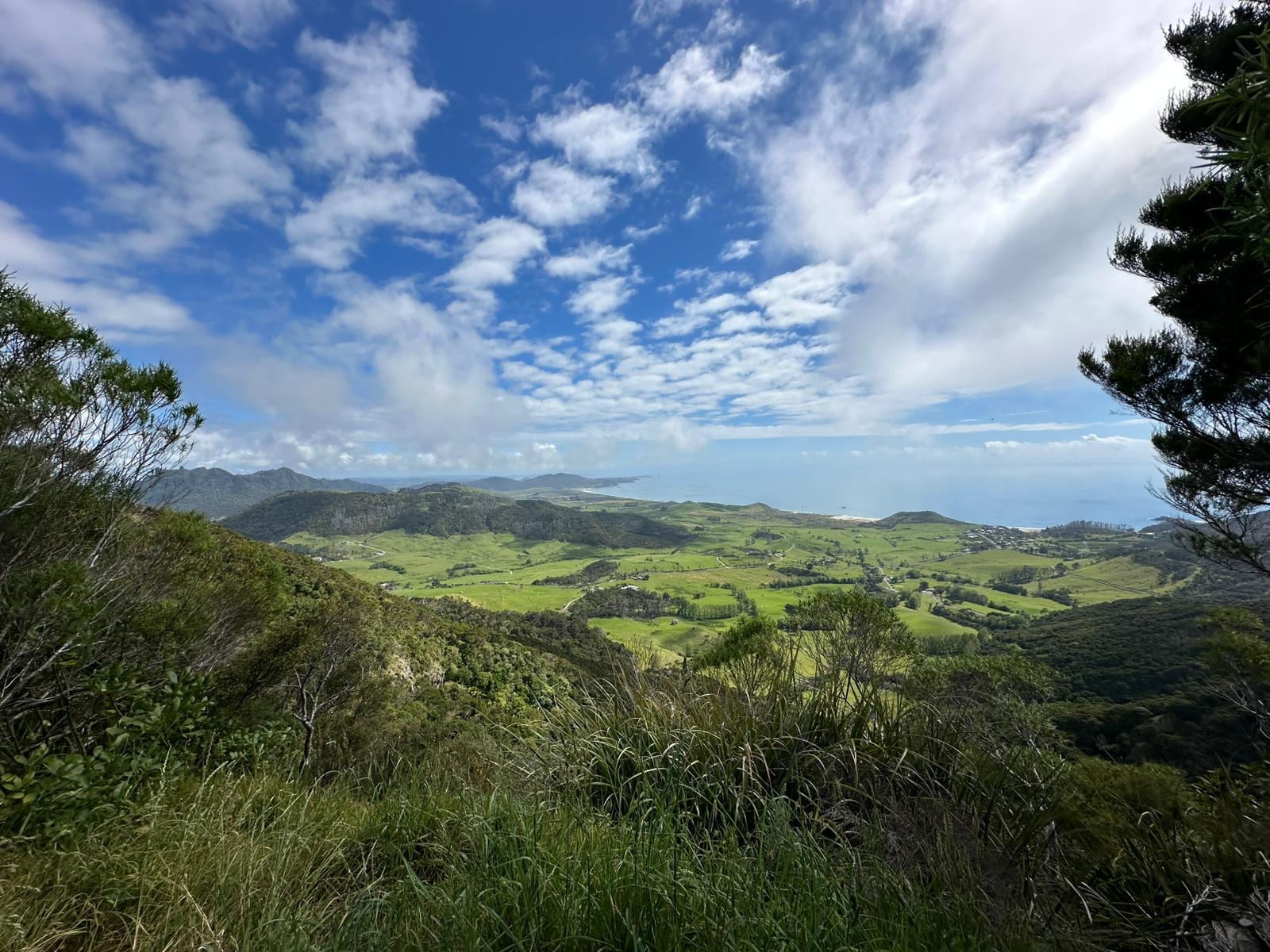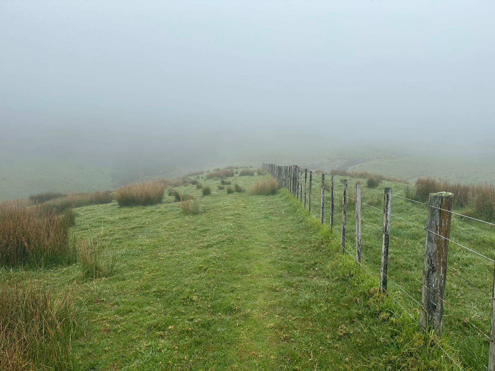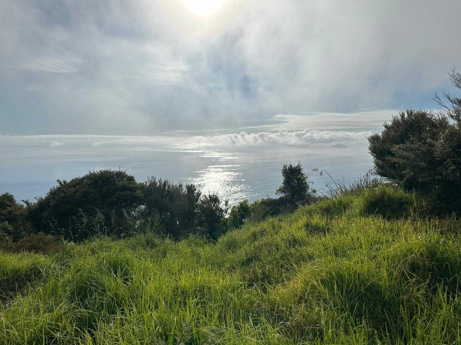 Um 7:30 Uhr ging es nahe des Pakiri Beach los. Wir hatten etwa zehn Stunden veranschlagt und die haben wir auch gebraucht. Allein für das erste Waldstück brauchten wir drei Stunden, es war ein ständiges Rauf und Runter. Wir machten eine kurze Pause an einem Hubschrauberlandeplatz und hatten sogar ein paar flüchtige Ausblicke auf die Küste. Die Wolken waren aber so schnell, dass man das Panorama wirklich nur kurz genießen konnte.
