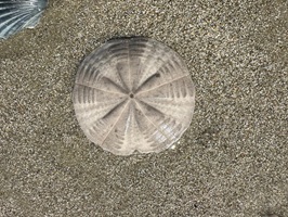 Nach dem Einkauf trennte uns nur noch eine kurze Strecke vom Camp, größtenteils ein Traumstück entlang des Strandes. Endlos lang und fast menschenleer. Wieder Muscheln, wieder die unaufhörliche Sehnsucht, sie mitzunehmen nach Deutschland. Sogar ein unversehrter Sanddollar fand ich. Unweigerlich musste ich an Carmen denken; wir beide hätten hier von morgens bis abends gesammelt, davon bin ich überzeugt. Höhepunkt war die Durchquerung eines kleinen Flusses am Strand. So viele Austernfischern an einem Ort habe ich noch nie zuvor erlebt – einfach zauberhaft.