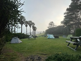 Der Blick auf die Bucht blieb mir wegen des Nebels verwehrt, aber ich wusste, dass es früher oder später besser werden würde. Nach einem schnellen Frühstück packte ich alles zusammen, denn der Plan war, den Riverside Holiday Park früh zu erreichen. Meine Kleidung war dringend reif für die Waschmaschine, es war wirklich nötig.
