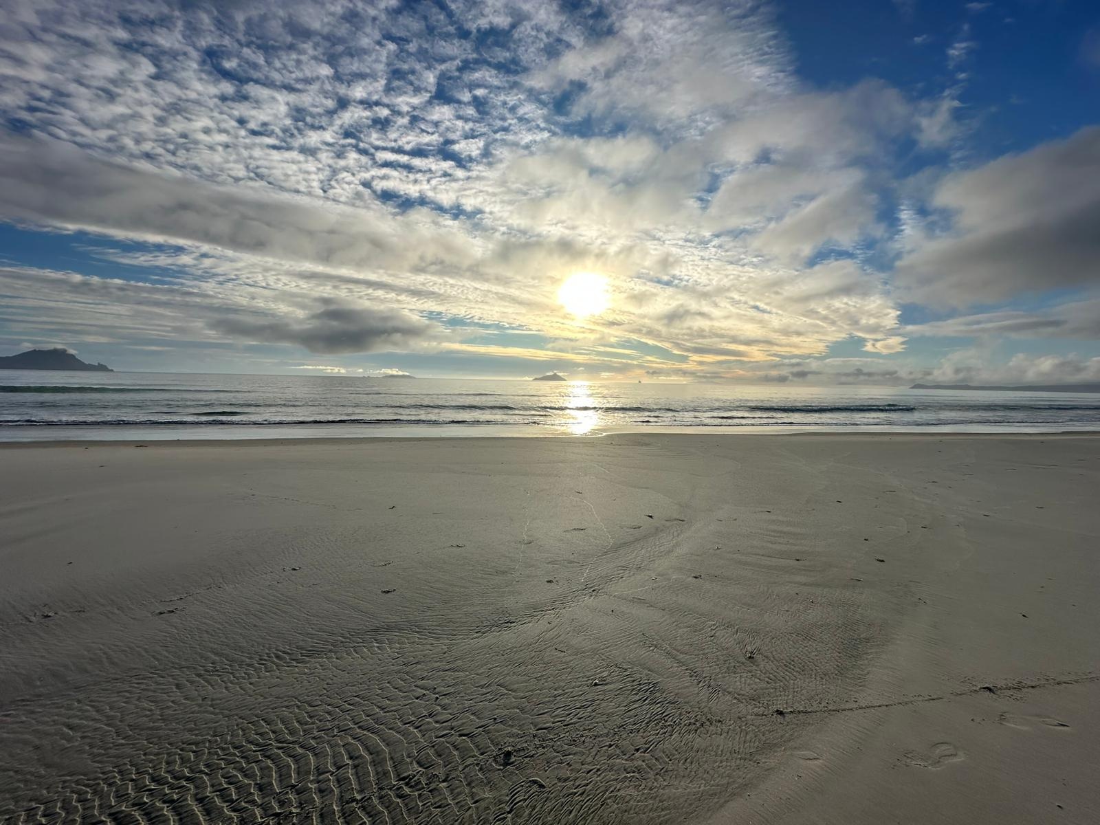Was für ein Tag auf dem Trail! Der Morgen begann am Ureteti Camp, das ich bereits gestern Abend in mein Herz geschlossen hatte, besonders wegen des direkten Strandzugangs. Fast wäre ich heute Morgen zu faul gewesen, den Weg zum Strand für den Sonnenaufgang auf mich zu nehmen. Aber wie gut, dass ich mich doch noch aufgerafft habe! Die Sonne ging spektakulär auf, mit den Wolken und Inseln im Hintergrund – das Runterlaufen hat sich definitiv gelohnt.