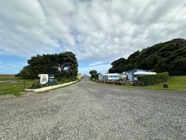 Als wir in dem Dörfchen ankamen, aßen wir beide noch ein Eis zusammen. Er wollte es auch noch ausgeben, aber ich lud ihn lieber ein. Nach dem Eis fuhr er mich zu einem kleinen, süßen Campingplatz, wo ich eincheckte. Sam und Grace, ein junges Pärchen, betreiben diesen Platz, der direkt am Meer liegt.