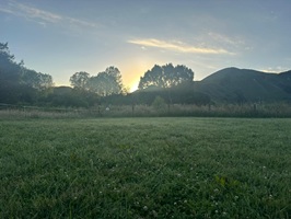 Ein herrlicher Morgen - wieder einmal hatte ich ausgezeichnet geschlafen. Schon früh am Morgen weckten mich die Vögel mit ihrem Gesang und das leise Plätschern des Flusses wirkte unglaublich beruhigend. Ich war vor Tino und Regina wach, nutzte die Ruhe, um in aller Seelenruhe zu frühstücken, meine Sachen zu packen und dann aufzubrechen. Mein Zelt war erfreulicherweise fast trocken, was bedeutete, dass ich heute weniger Gewicht schleppen musste – ein kleiner Sieg am Morgen.