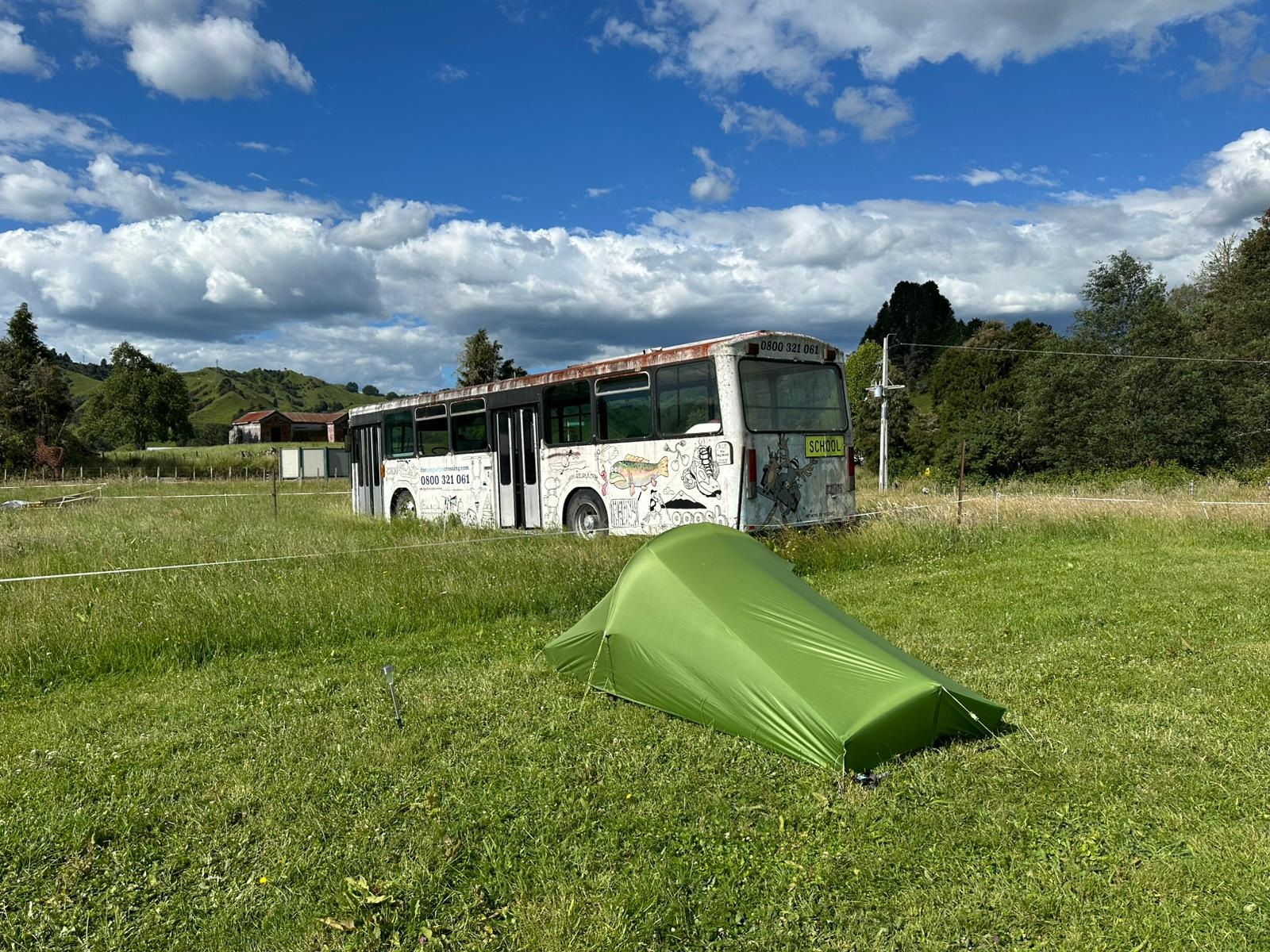 Mein Zelt stellte ich neben einem alten Bus auf der Wiese auf. Bald kam Guido – mein Kapitän im Padelboot die kommenden Tage - dazu und so schien es, als blieben wir zu zweit. Morgen wird es um 7.30 Uhr Frühstück geben und ich kann in aller Ruhe meine Planung machen und im Fluss baden. Bei den Trailhosts gibt es auch zwei Jack Russell Hunde, eine graue Tigerkatze und ein süßes Katzenbaby, das eine deutsche Wanderin namens Christine vor zwei Wochen am Straßenrand gefunden hatte. Jetzt habe ich mich noch ewig mit Guido, einem netter Kerl aus den Niederlanden, unterhalten. Doch nun freue ich mich auf einen komplett freien Tag morgen und gehe schlafen.