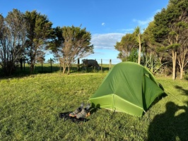 In einem plötzlich auftauchenden Café gab es für mich einen Mango-Passionsfrucht-Smoothie und ein Gespräch mit einer schwangeren Frau über den Te Araroa. Sie wollte ihn dieses Jahr laufen, was natürlich nicht geklappt hat. Mir ging es ja letztes Jahr ähnlich, nur dass bei mir mein Enkel Felix im Oktober kam. Ich dachte während des Gespräches so bei mir: Das war die richtige Entscheidung, den Trail um ein Jahr zu verschieben, bei ihr ist es Pech, aber sie hat ja auch noch viele Lebensjahre vor sich.