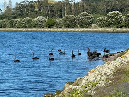 Leider roch es nicht besonders gut, da ein Lastwagen nach dem anderen zur Kläranlage fuhr. Trotz Kläranlage war der Watercare Coastal Walkway schön und voller Vögel.