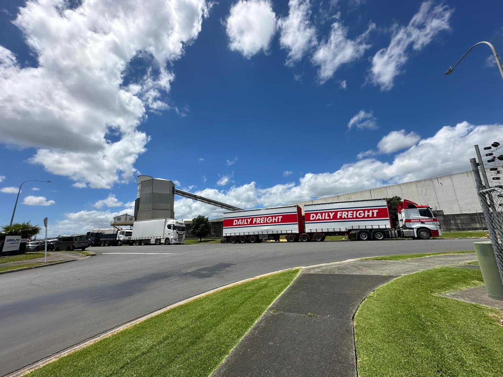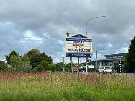 Weiter ging es auf der Straße Richtung Mercer, wo mich eine unerwartete Hürde erwartete: Straßenarbeiten. Auch als Fußgänger kam ich nicht durch und musste eine Umgehung laufen – nicht zu ändern. So schön die Landschaft in Neuseeland ist, auch hier gibt es Industrie. Ich lief an riesigen Hallen vorbei, die Stahllieferanten, Bohrer, Autoreifenfirmen und mehr beherbergten. Glücklicherweise war ich bald durch und es wurde wieder grüner, mit Häusern auf riesigen Grundstücken.