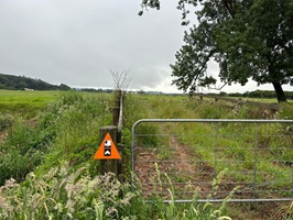 Auf dem Weg dorthin fing leise an zu regnen, aber das schreckte mich nicht ab. Der TA führte nun über Weiden ganz schön bergauf und bergab. Aus dem Nieselregen wurde bald heftiger Regen, der zweieinhalb Stunden anhielt. Dank Poncho und Hose blieb ich aber trocken.