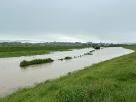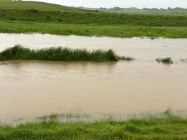 Von nun an ging es einfacher auf der Straße weiter, immer in Begleitung des Flusses, der mich die ganze Etappe über auf der rechten Seite begleiten sollte. Auch die umliegenden Wiesen standen teilweise unter Wasser, was auf die enormen Regenmengen der letzten Tage hindeutet.