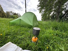 Das Zelt war schnell aufgebaut, ich traf weitere alte und neue Bekannte, duschte ausgiebig, aß zu Abend und habe mich jetzt ins Zelt verkrochen. Es wurde heute Abend schnell kühl, aber in meinem warmen Schlafsack liege ich jetzt perfekt und lasse den langen, nassen, aber wunderschönen Tag ausklingen.