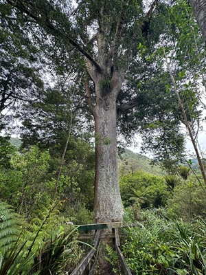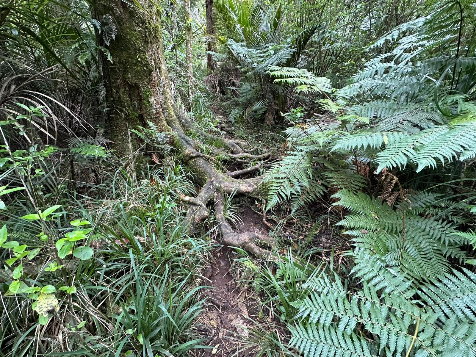 Ich kam an einem tausendjährigen Kauri vorbei, der eine Höhe von dreißig Metern hatte und einen wahnsinnigen Umfang besaß. Es ist schade, dass ich seine schiere Größe auf einem Foto nicht wirklich festhalten konnte – für den richtigen Eindruck man muß vor so einem Riesen leibhaftig davor stehen.
