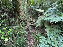 Der Aufstieg zum Hakarimata Walkway gestaltete sich extrem anstrengend. Er führte über zahlreiche – oder soll ich lieber sagen: zahllose - angelegte Treppenstufen, während der Abstieg später von einem Wurzelwerk erledigt wurde, dass keine weiteren Stufen nötig machte.