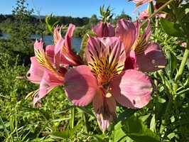 Ich war wieder einmal fasziniert von der Flora am Straßenrand. Auf einer Strecke von 100 Metern hatte sich Kapuzinerkresse ausgebreitet, die bis zum Flussufer wuchs – einfach wunderschön. Und ich fragte mich, wie der Fluss wohl bei normalem Wasserpegel aussieht, so viele Bäume, die jetzt im Wasser standen.