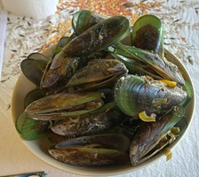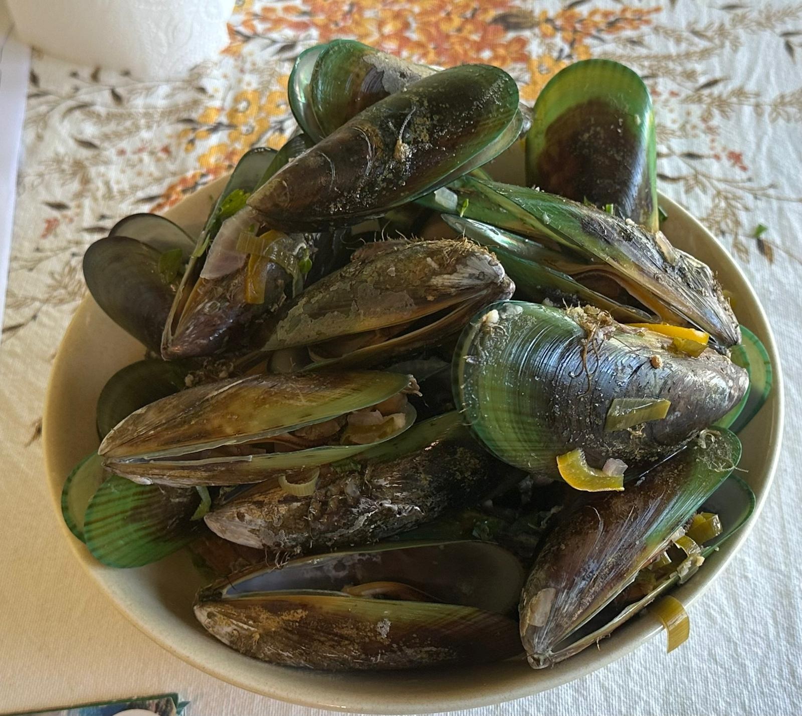Obwohl das Haus renovierungsbedürftig aussieht und der Garten etwas wild aussieht, ist das Wichtigste: Nadine ist super nett. Wir können alles benutzen, uns im Garten ausbreiten, duschen und Wäsche waschen. Als alles aufgeräumt war, hatte sie Grünlippenmuscheln für uns und sich gekocht – etwas ganz Feines. Sie sind noch größer als unsere Miesmuscheln.
