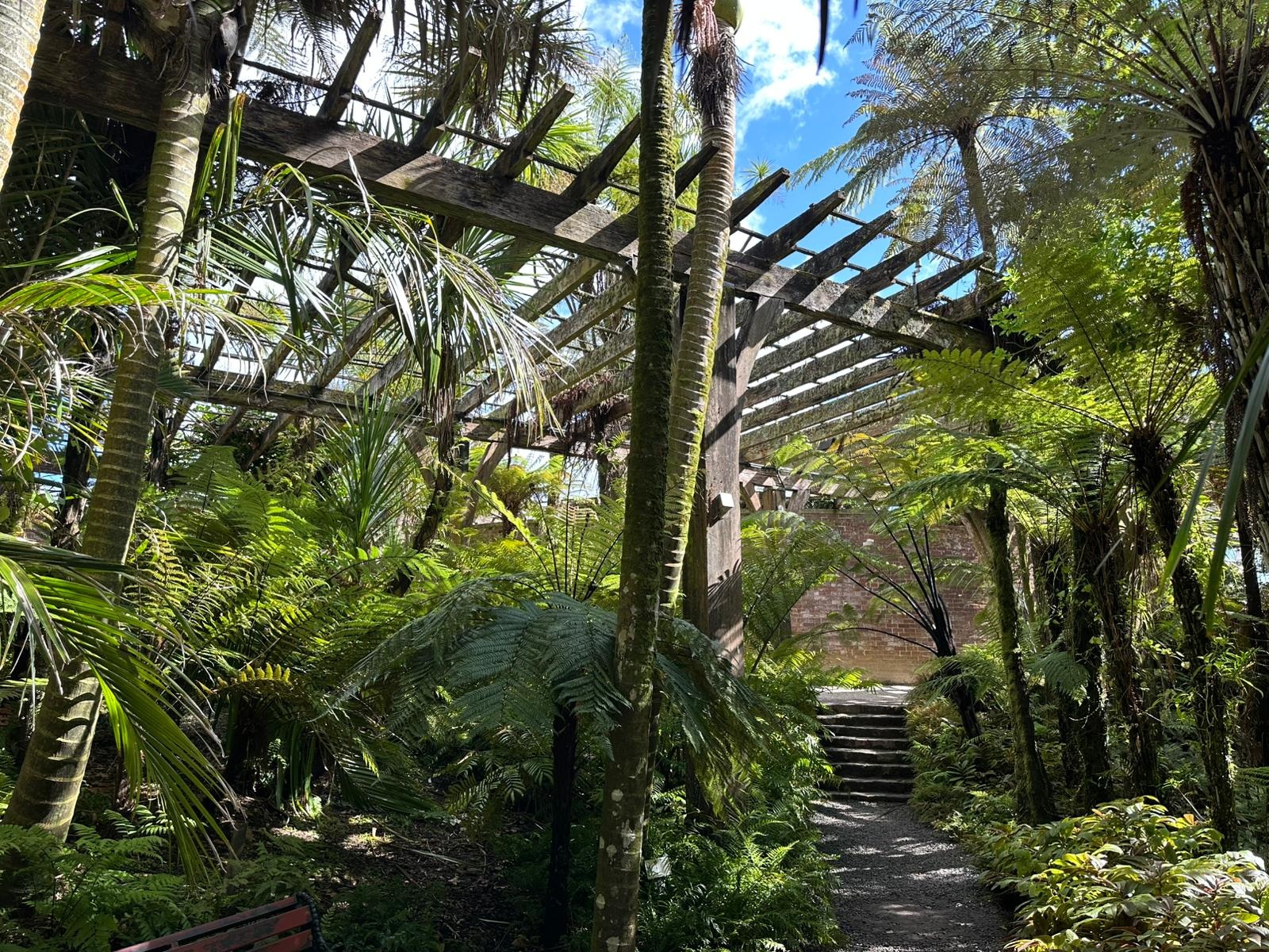 Im Auckland Domain angekommen, wieder ein toller Park, gab es wunderschöne Gewächshäuser und einen Farngarten. Der Abstecher hat sich wirklich gelohnt, ich habe ganz tolle Pflanzen gesehen. Die riesigen Seerosenblätter erinnerten mich sofort an Mauritius, wo ich sie in dieser Größe bisher nur gesehen hatte. Nebenan auf den großen Spielfeldern wurde alles Mögliche gespielt, und ich habe eine Weile beim Cricket zugesehen.