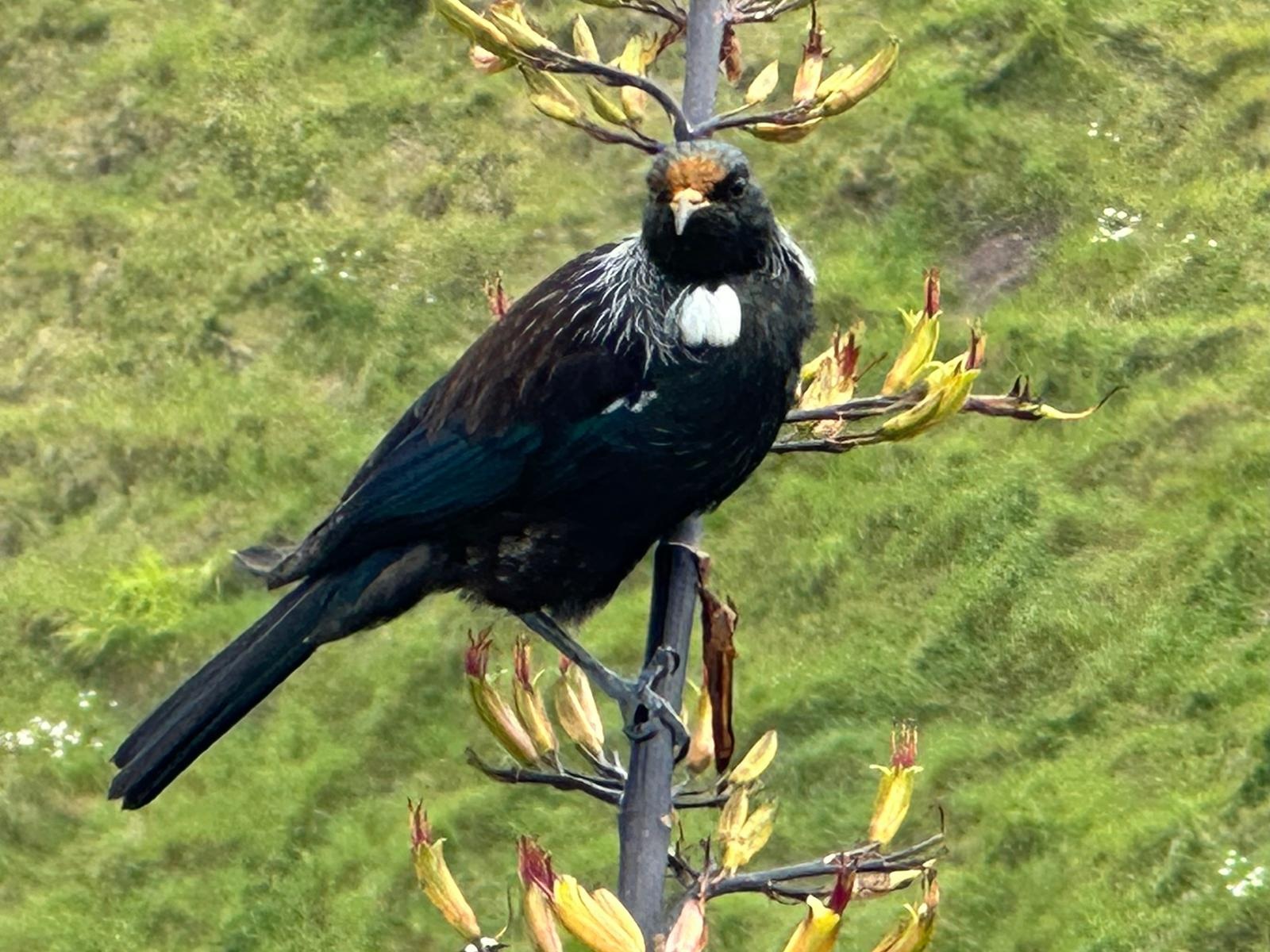 Heute Morgen bin ich ganz gemütlich gestartet. Es gab einige Hiker, die heute passen wollten, aber mir hat der Weg aus der Stadt hinaus sofort gefallen. Schon im ersten Park habe ich eine Weile verbracht und ein paar Tūī‘s beim Spielen zugesehen – so wunderschöne Vögel!