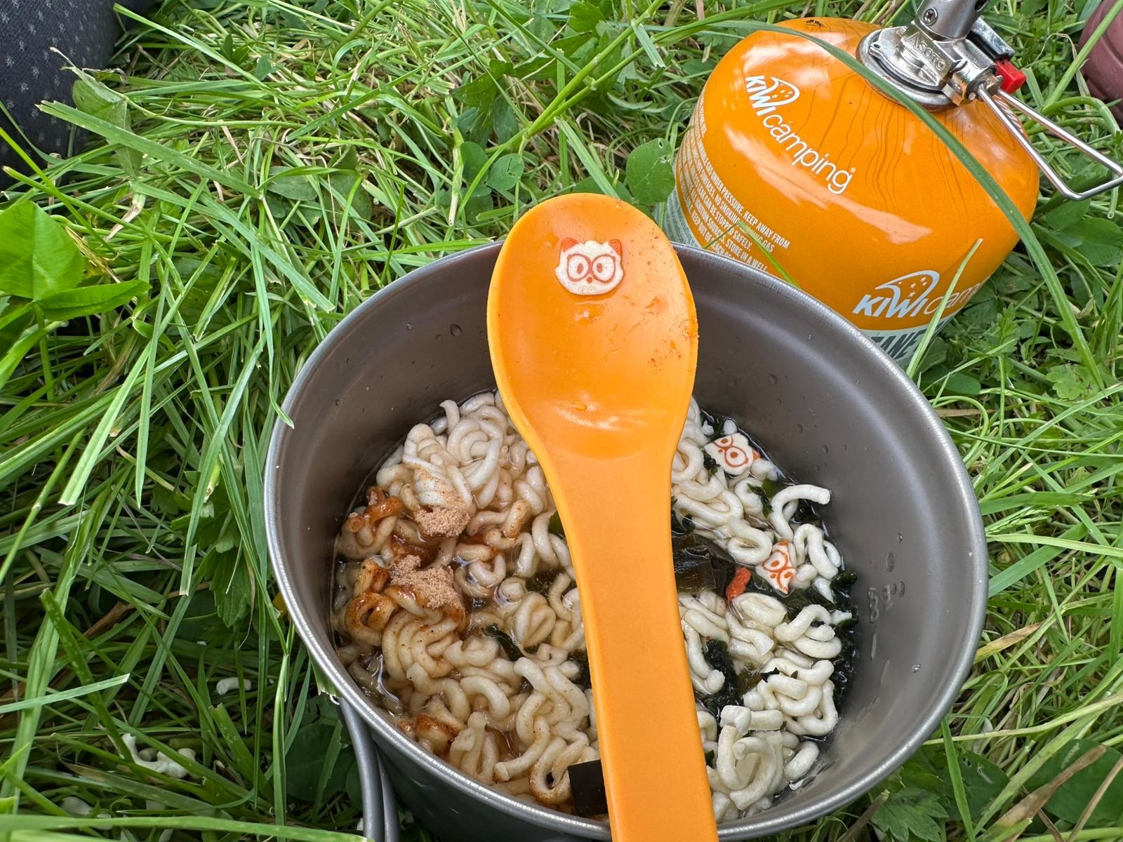 Die nassen Schuhe und Socken sind ausgezogen und die Vögel in den Bäumen drumherum singen ihr fröhliches Lied. Zur Abwechslung gibt es heute koreanische Nudelsuppe (aus der mich kleine Gesichter anstarrten).