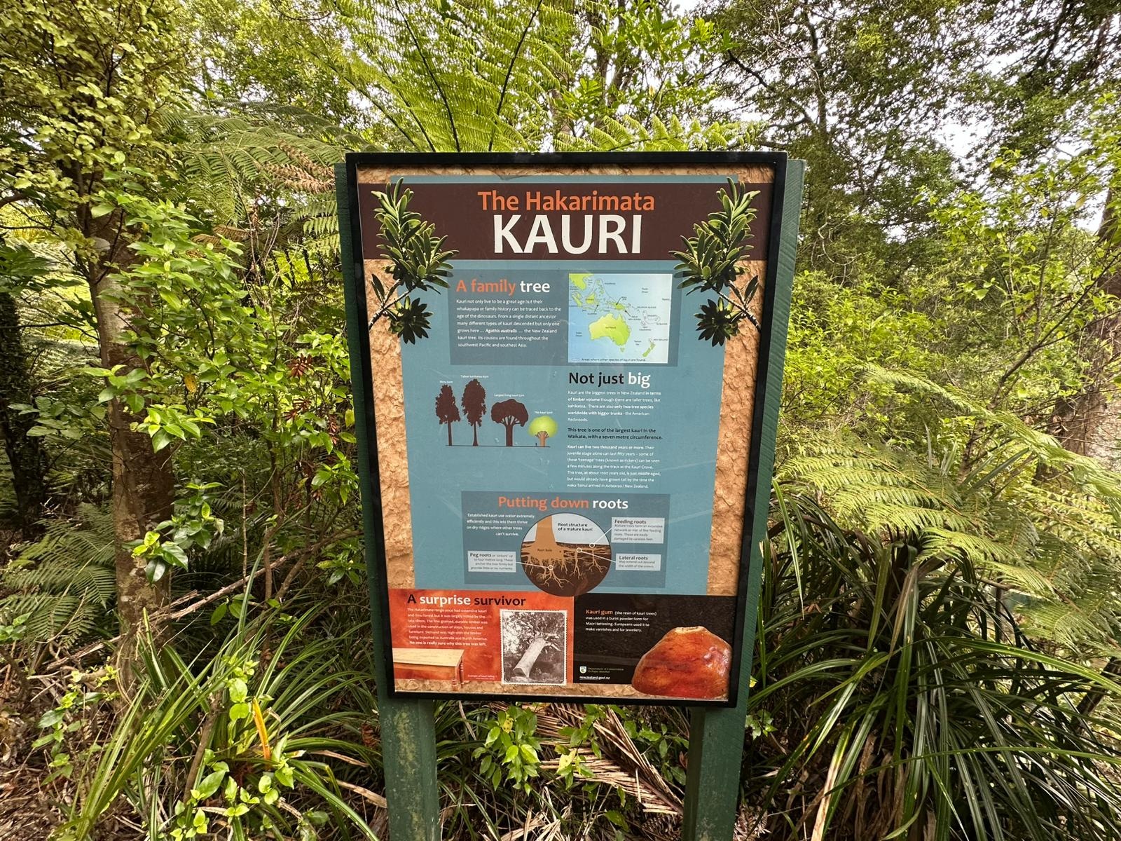 Ich befand mich auf dem Kauri Loop und sah viele kleine, aber schon sehr beeindruckende Kauri-Bäume. Die Wichtigkeit des Kampfes gegen das Kauri-Sterben war auf dem Trail präsent. Zu Beginn des Weges waren die Schuhreinigungsstationen noch gut bestückt mit Bürsten, Wasser und Desinfektionsmittel. Weiter hinten fehlten die Utensilien jedoch oft. Ich fragte mich, warum die Bekämpfung der Krankheit in manchen Bereichen wohl wichtiger genommen wurde als in anderen.