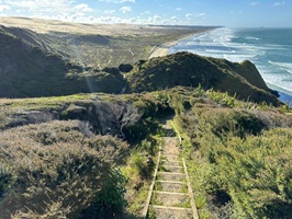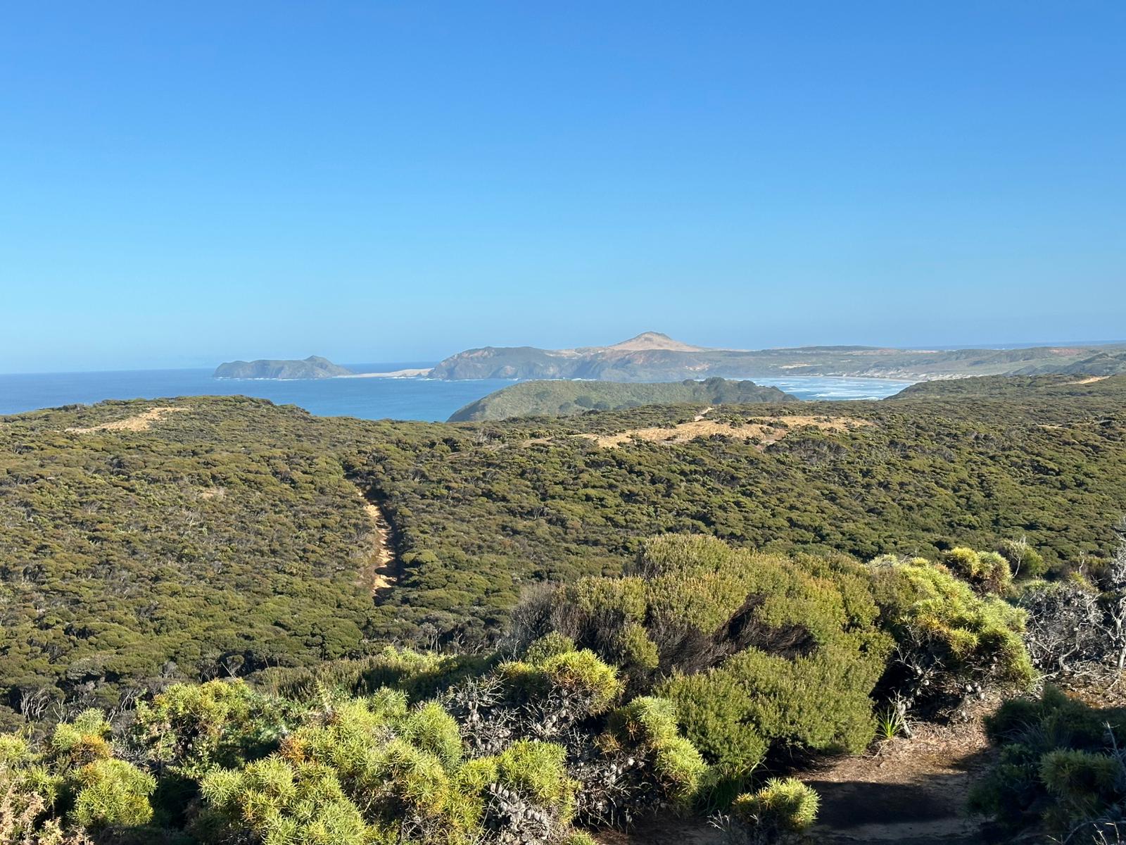 Ein kleines, aber feines Highlight war die Begegnung mit Rob, seiner Frau und ihrem neuen Hund – das hat mir wirklich den Tag versüßt. Solche unerwarteten Momente machen den Te Araroa aus. Oben auf dem Clifftop Walk dachte ich, wie schön es wäre, so ein Häuschen mit Meerblick zu besitzen.