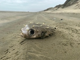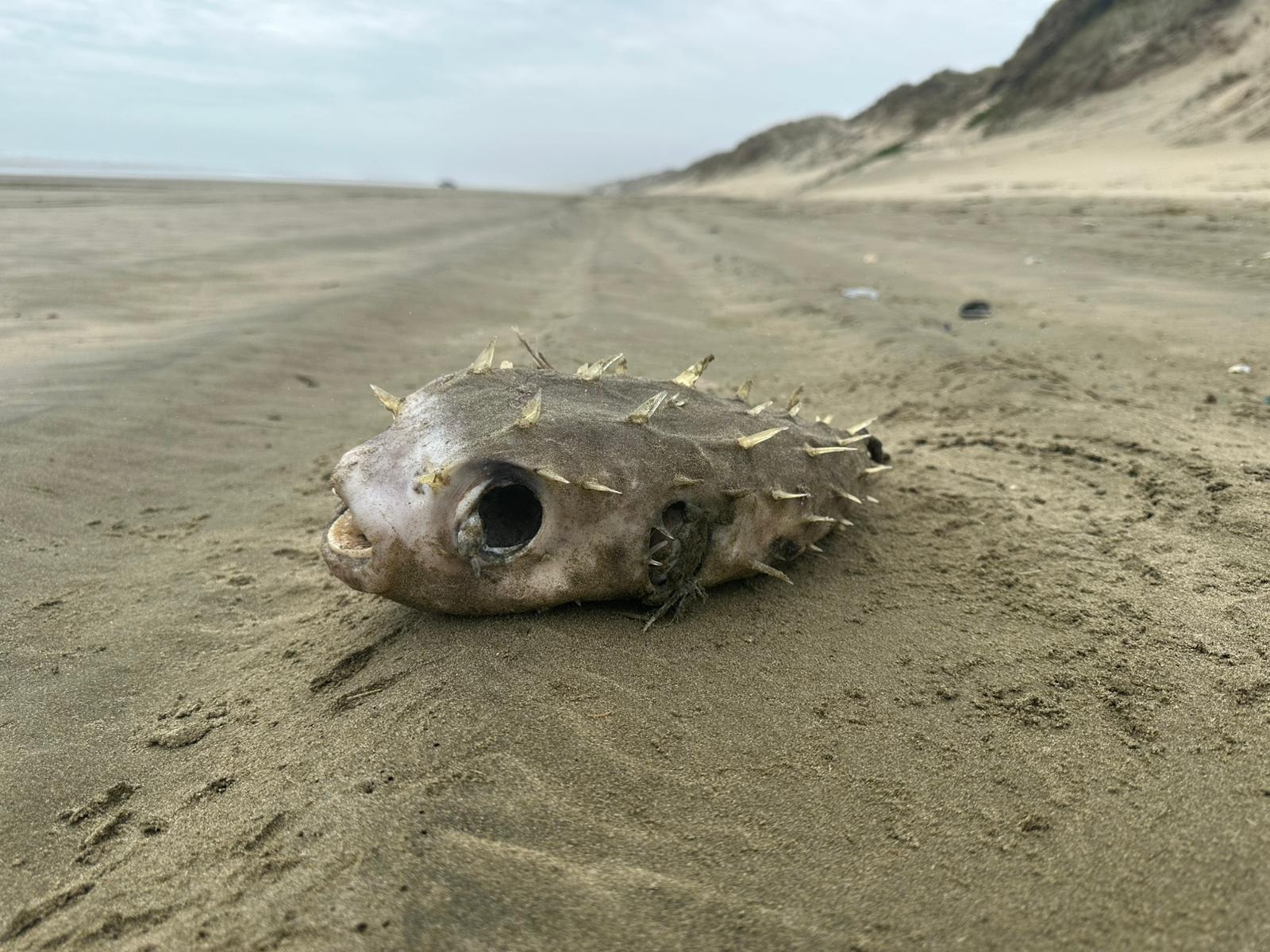 Empfang gibt es hier keinen. Das wird wahrscheinlich noch dauern mit dem Verschicken, aber ich versuche es gleich mal. Es gab viel Meer von rechts, Dünen von links, Wahnsinnswetter und sogar einen toten Rochen am Strand! Es läuft wirklich gut, trotz des Schreckens mit den Walen.