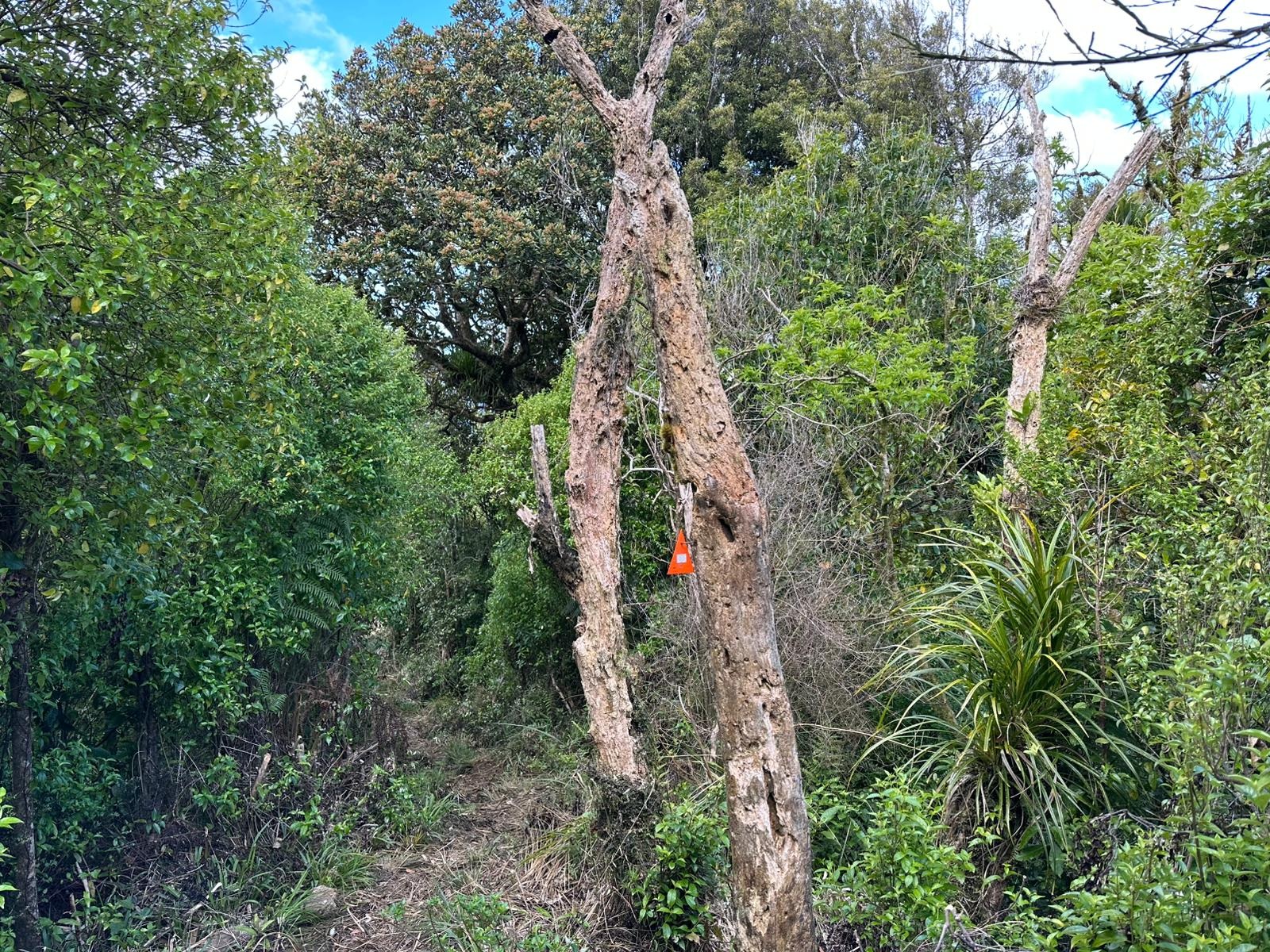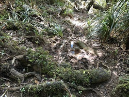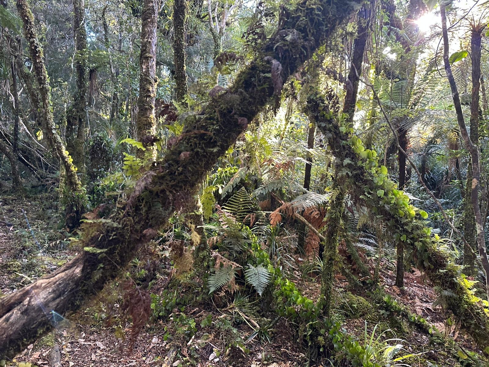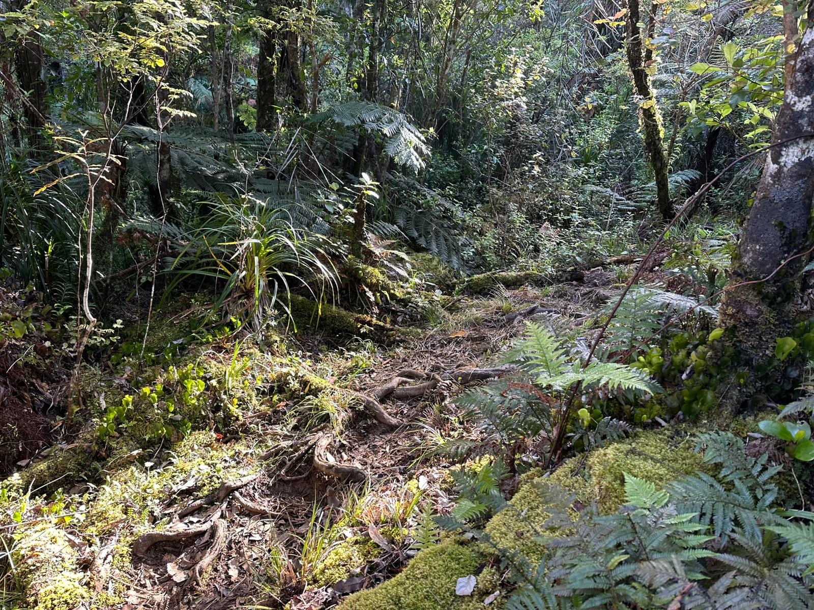 Nach der dritten Pause erreichten wir den Mangamuka Saddle. Von hier aus stand uns noch ein letztes großes Auf und Ab bevor: einmal runter und dann der letzte große Peak für heute, bevor es nur noch bergab gehen sollte. Wir waren extrem dankbar, dass das DOC (Department of Conservation) den Wald im wahrsten Sinne des Wortes "aufgeräumt" hatte. Größere umgestürzte Bäume waren beseitigt und das Unterholz war geschnitten. Ohne diese Arbeit wäre der Weg um ein Vielfaches anstrengender gewesen.