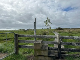 Die Landschaft entlang der Strasse war hügelig und rechts und links gab es Rinder und ein Bach schlängelte sich neben der Straße entlang. Trotz des bedeckten Himmels war ich froh, wieder unterwegs zu sein. Außerdem bin ich froh, alleine zu laufen. Die lärmenden Amerikanerinnen am Abend vorher waren mir einfach zu viel. Auch heute Morgen, als alle aus ihren Zelten gekrochen waren, gefiel es mir viel besser, mein Zelt zusammen zu packen und mich auf den Weg zu machen.